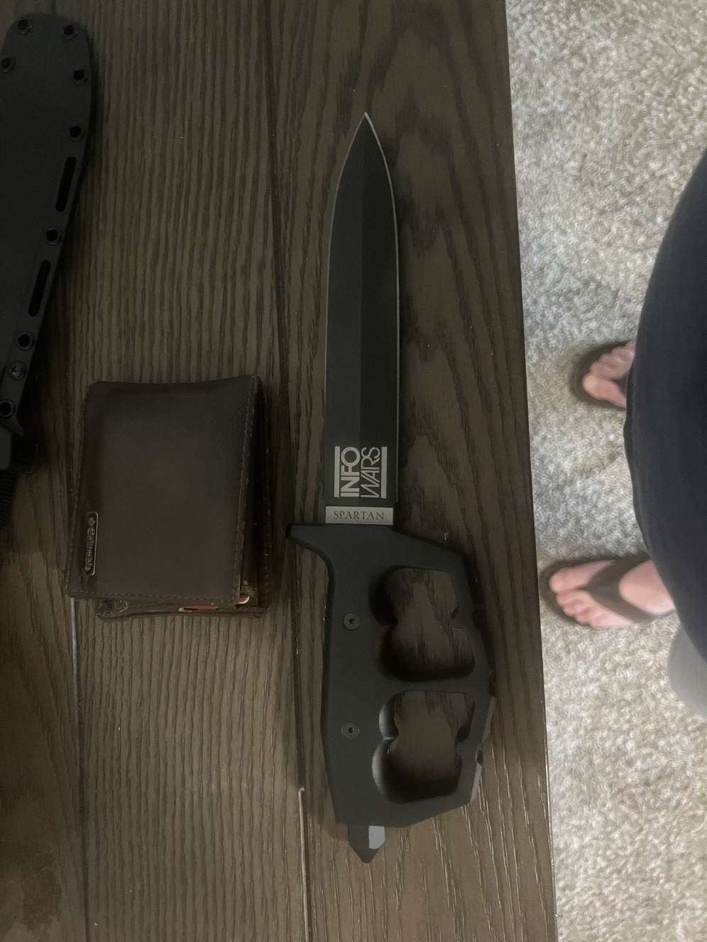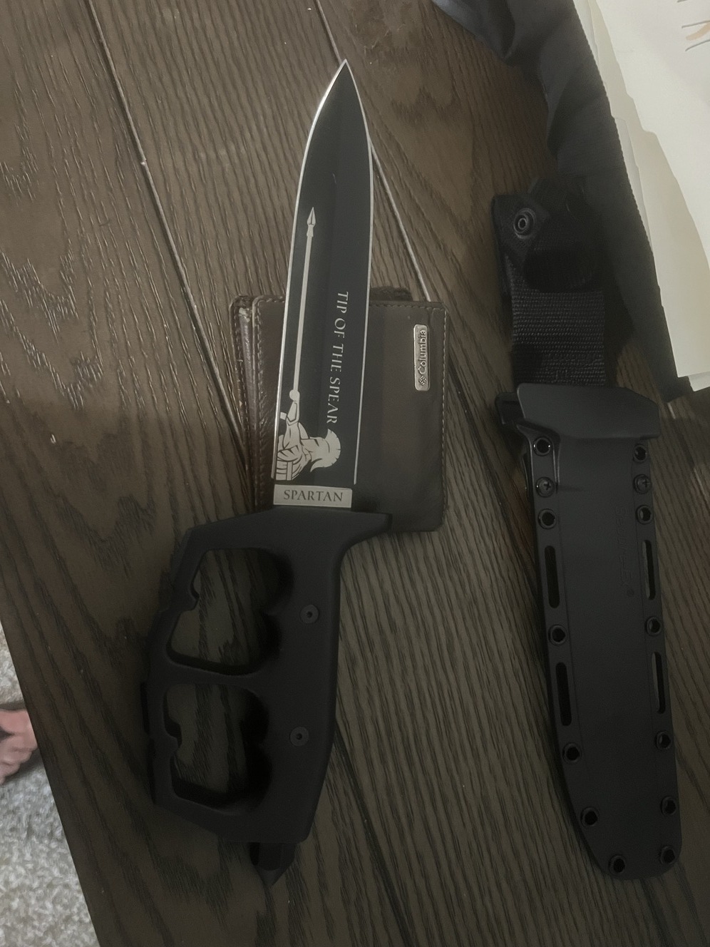Tip of The Spear Dagger with Brass Knuckles. Never used, never will maybe someone else can enjoy this, well made, is solid , very sharp doesn’t feel cheap in your hand