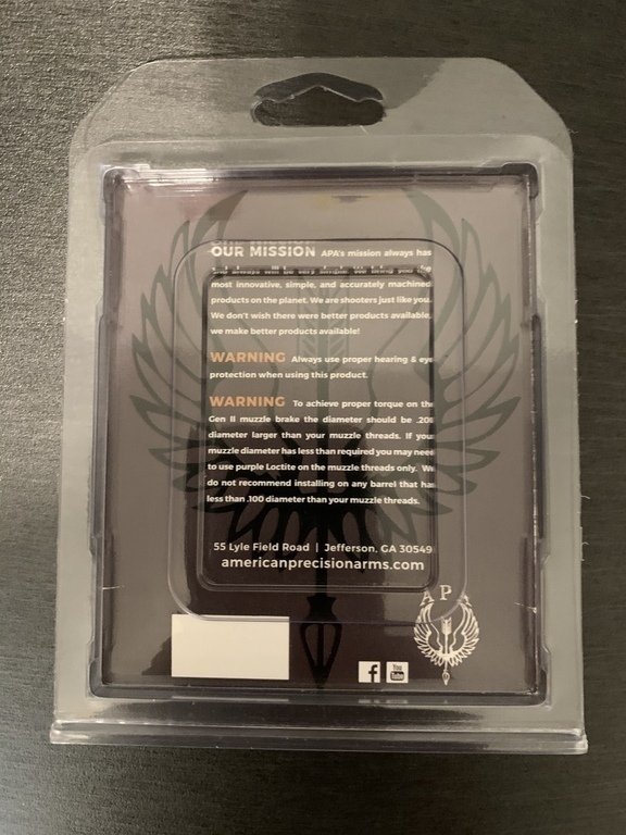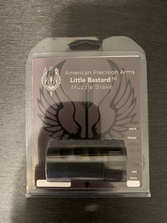 Like new! American Precision Arms GEN 2 LITTLE BASTARD SELF TIMING MUZZLE BRAKE Our muzzle brakes are an industry leader! Our Gen 2 is a two-piece design that allows the shooter to quickly install or remove their muzzle brake for whatever reason. Say goodbye to crush washers, peel washers or the need for a professional installation. Your hands and a crescent wrench are all that is needed. We offer these brakes in stainless steel or a nitride black finish.