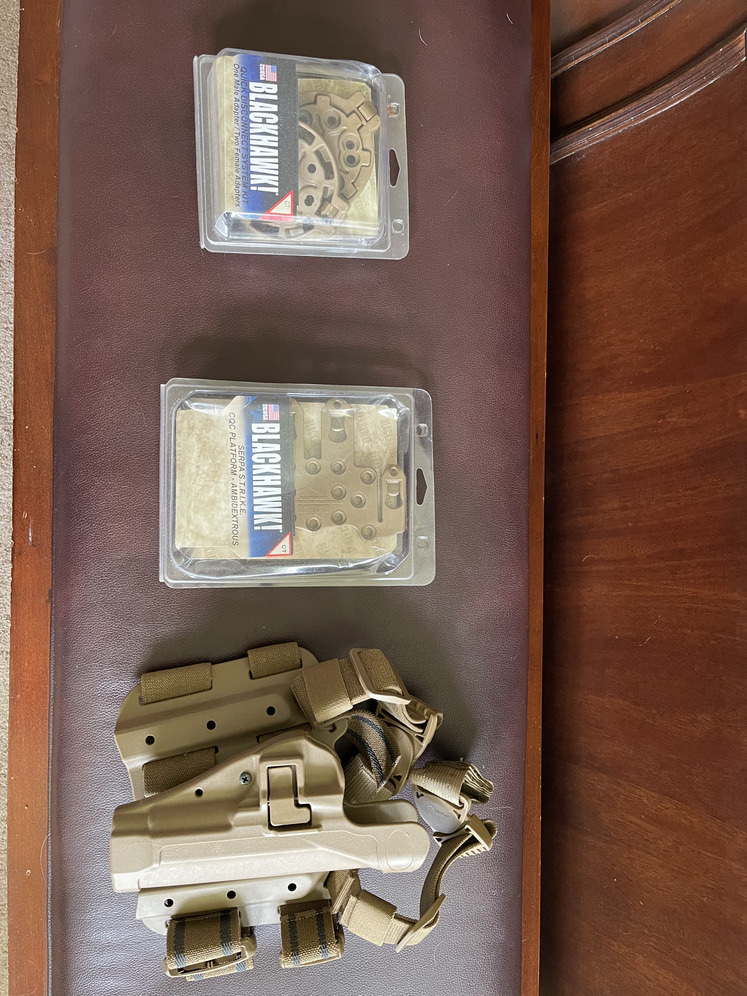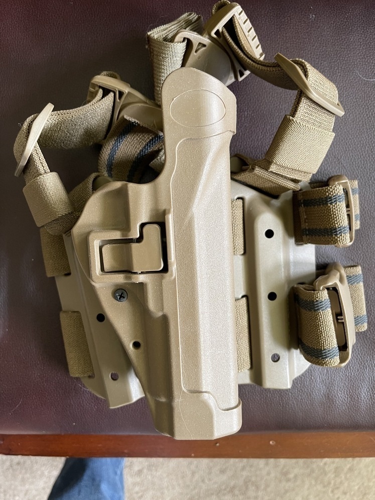 M9 beretta thigh drop holster. Quick disconnect and strike plate.