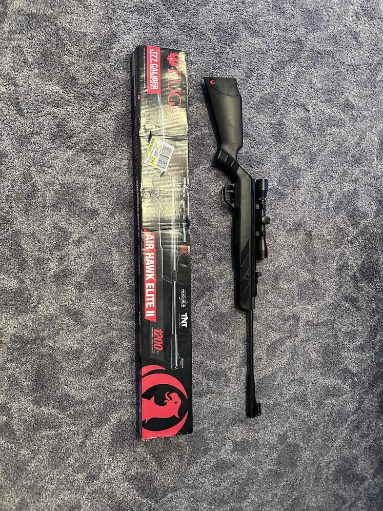 Ruger Air Hawk Elite II Air Rifle. 1,200 fps. 4x32 precision scope. Adjustable Fiber Optic Sights. Only fired a few times. This gun is very accurate and powerful but has no kickback. $140.