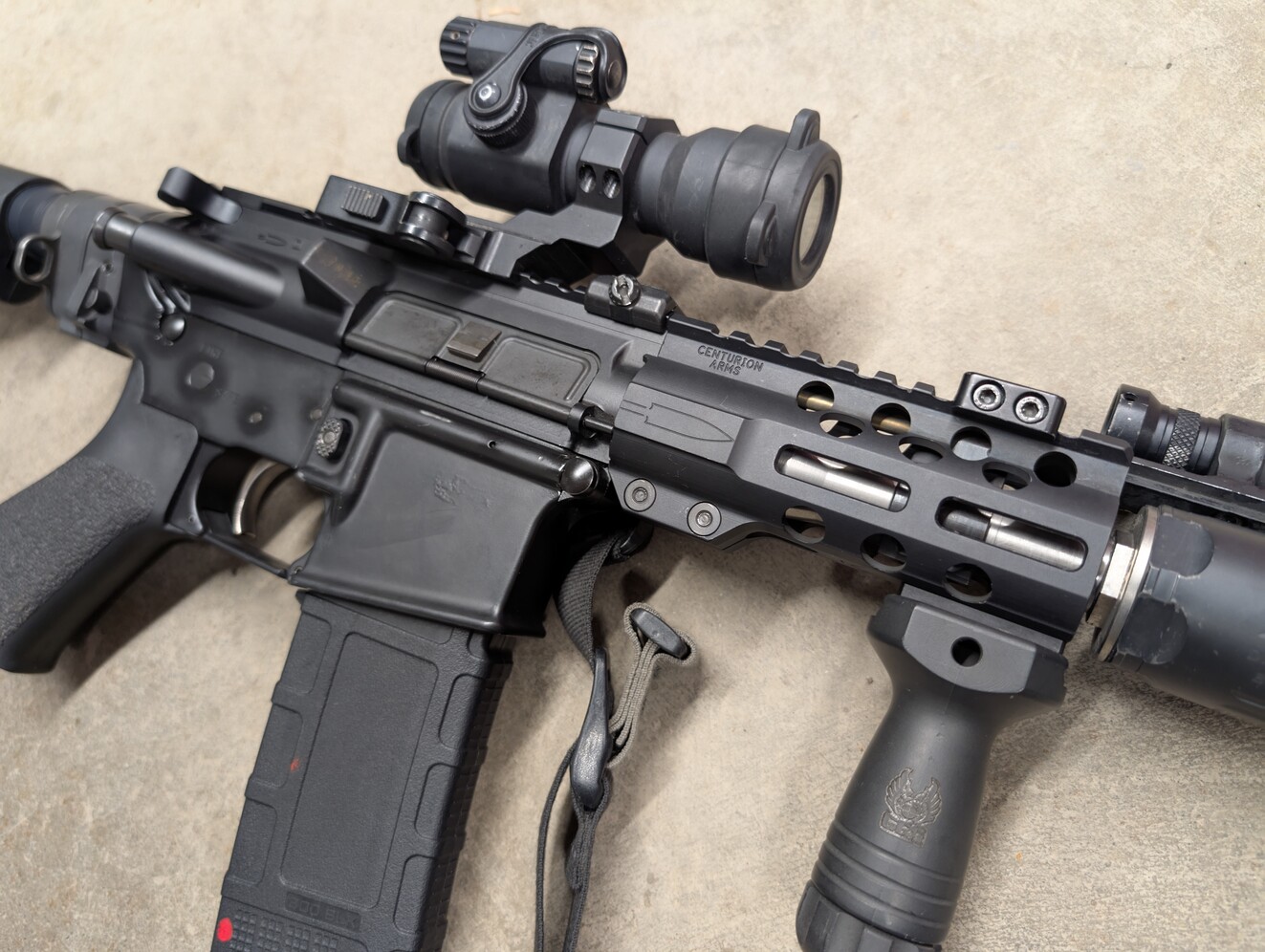 Upper has all the upgrades done to it from Centurion including a tabbed and pinned gas block, as well as the upper receiver to handguard index pin