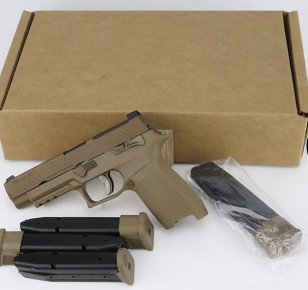 This is an ANIB Sig Sauer M17 Commemorative in unfired condition. One of only 5,000 produced, all serialized from M17-0001 to M17-5000. SIG Sauer did a limited release run of these, a variant of the P320, with the same markings as those awarded the US Army contract. Comes in the same cardboard packaging as delivered to the Army and two spare magazines. Mint bore.