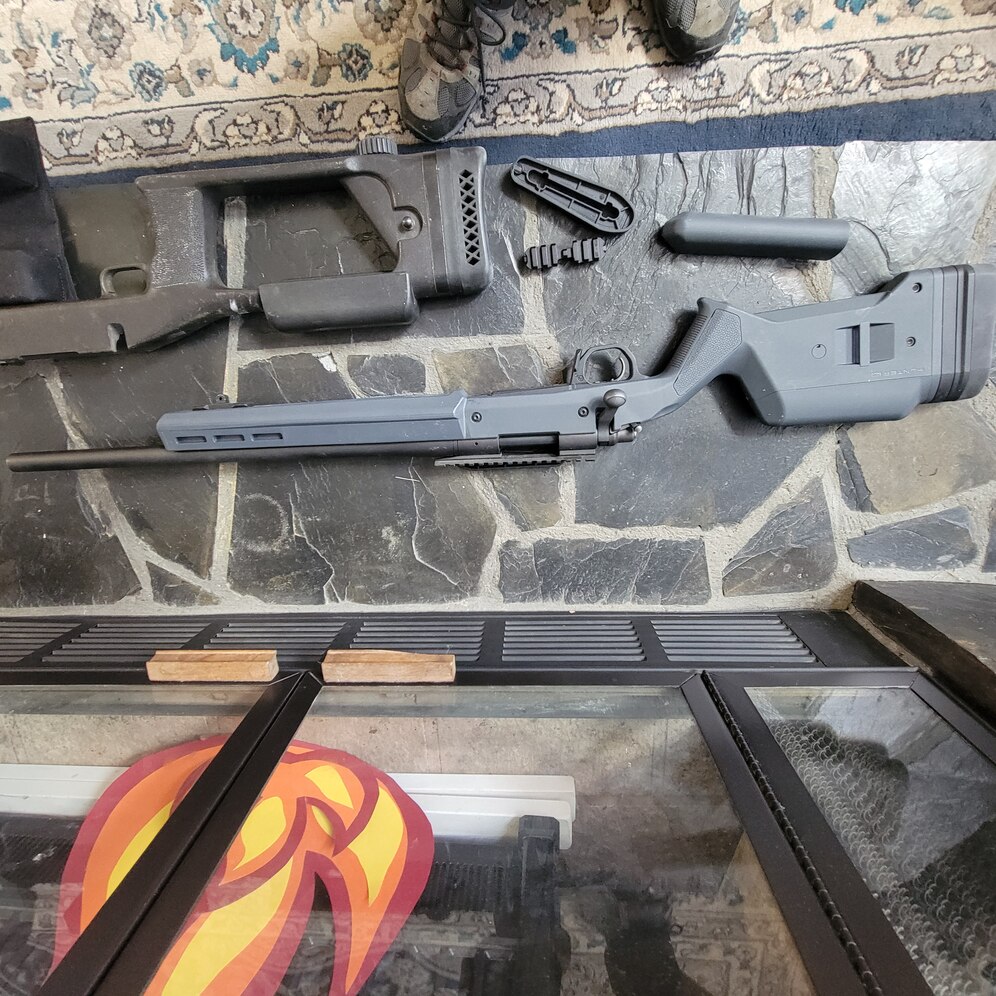 Remington 700 Tactical 308 up for sale. 20 inch barrel with adjustable factory trigger. This was an excellent rifle pulling sub moa @ 100 yds with Hornady March ammo (.75 MOA under 5rds). I was able to stay between 1 and 1.5 with PMC Bronze and it liked all ammo except Hornady Outfitter....we dont want to talk about that. Rifle is sitting in a Magpul Hunter stock with custom order receiver bolts that is a perfect fit on the stock at 65lbs tourque. Stock shims and extra cheek riser included. Top is a Nightforce rail with recoil lug perfect for the heavier optics. Also included is an additional Ultimate Sniper Stock that will need some removal of the glass bedding to fit, 5 and 3 rd magazine, and a few extra accessories. This is a package deal, will not separate. Possible trades. Have a great day!