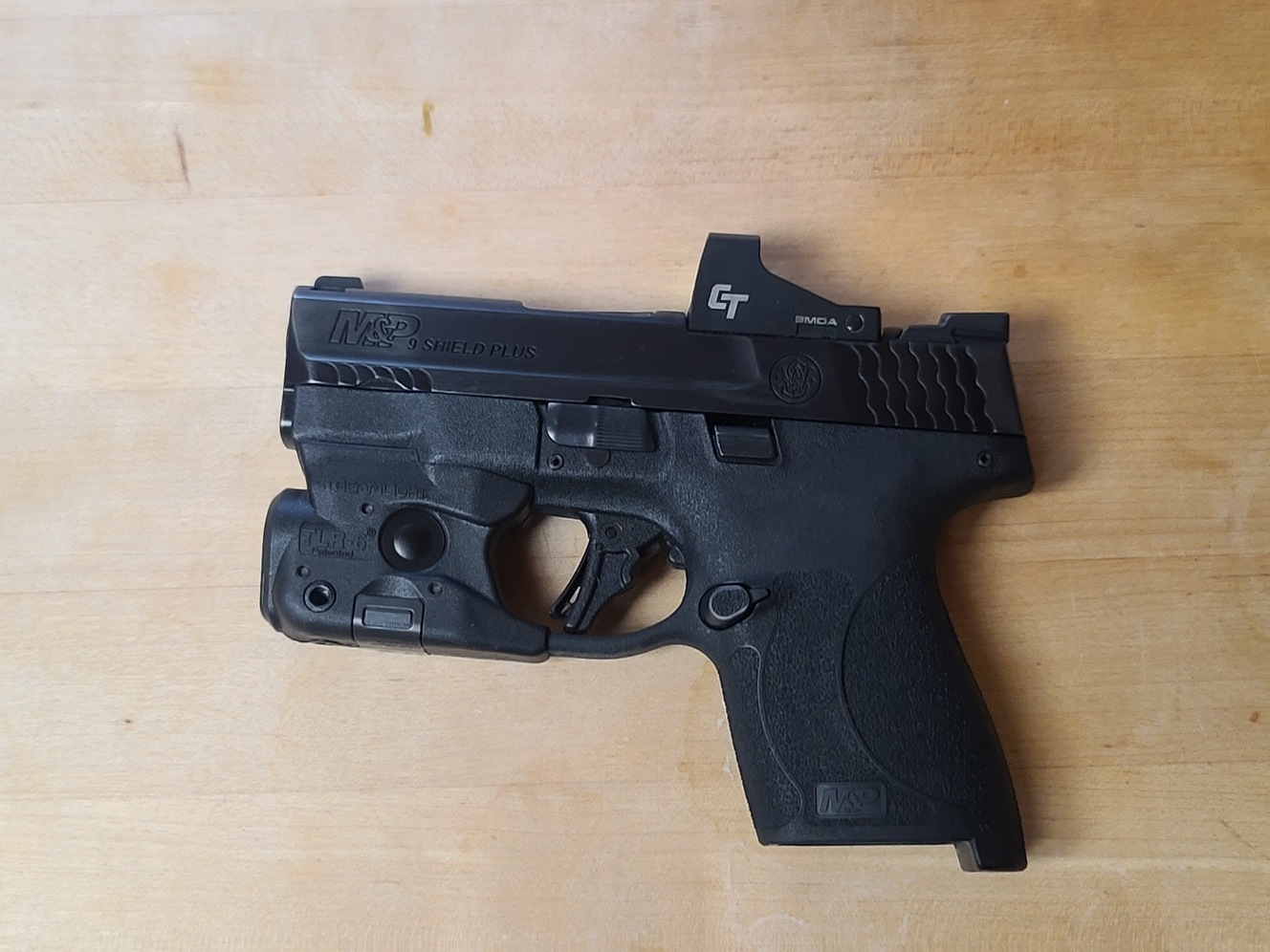 Smith & Wesson M&P Shield Plus 9mm with Crimson Trace CTS-1550 and Streamlight TLR-6 (light/laser combo). Comes with 4 mags (10,13 and two 15s) Blacksmith Tactical OWB holster with paddle or belt loop attachments. Bravo Concealment OWB holster (not made for light) Everything works great and great condition. Probably only 200 rounds through it. Selling because I got a new carry gun and wife was gonna kick my ass if I didn't!