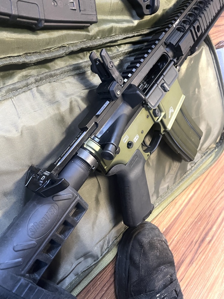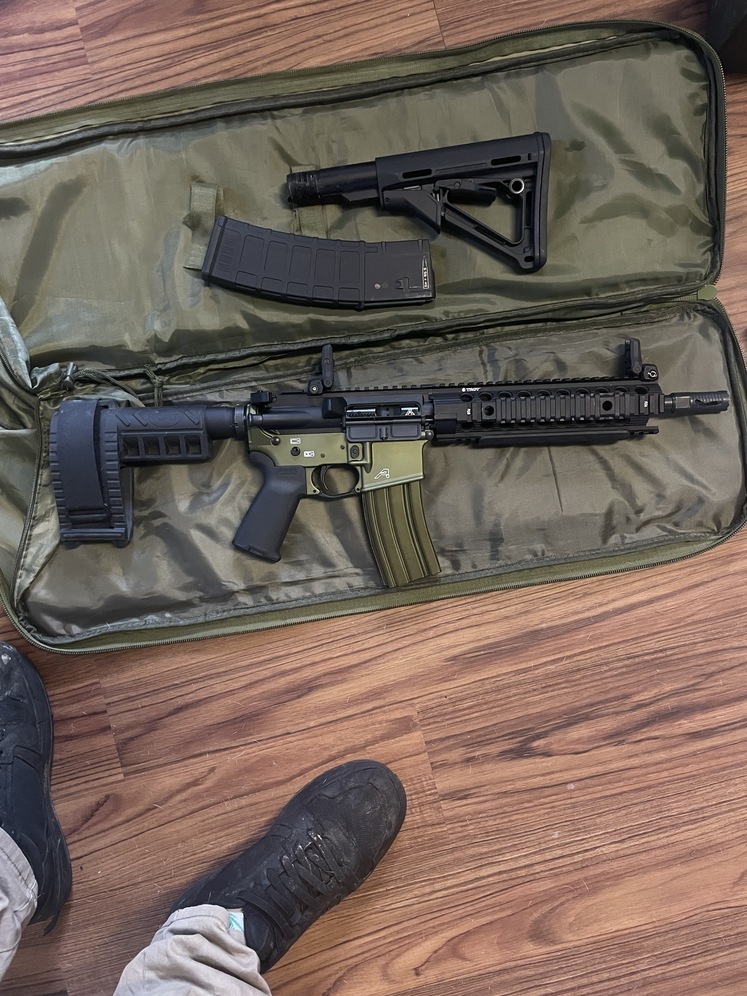 10.5 complete Troy quadrail upper with compensator. Scorpionrifleworks Bolt carrier, Geisslel charging handle, Aero lower & Sig Brace. It’s nice & reliable has about 1200 rounds through it. Comes with bag case, two mags and extra magpull stock.