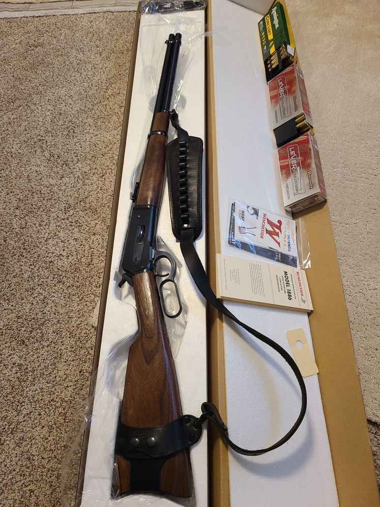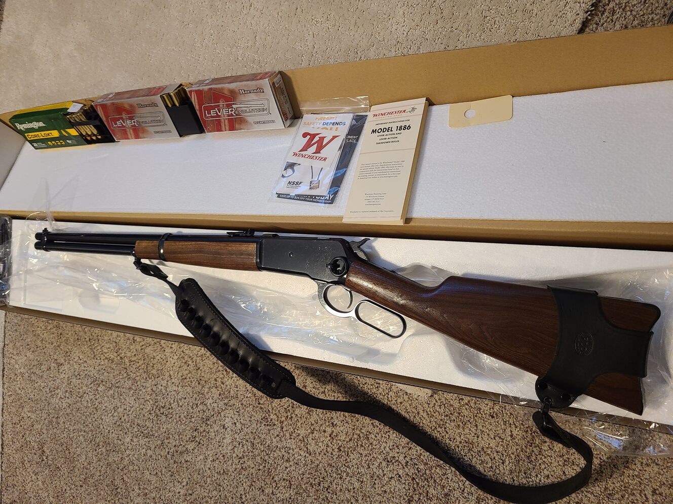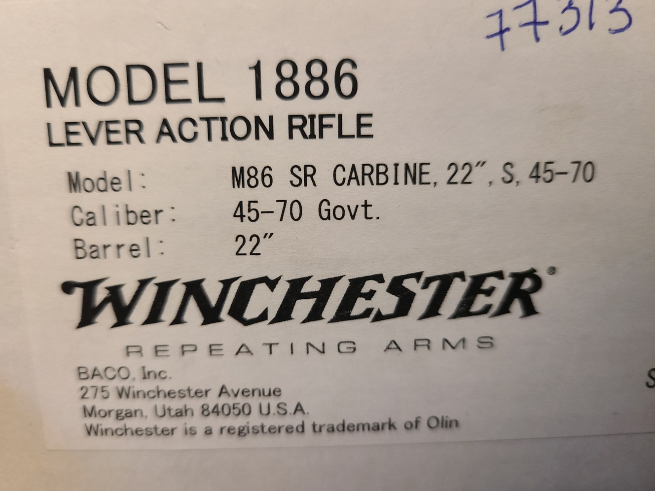 Winchester 1886 cal. 45-70 saddle ring carbine. Rlo custom no drill leather harness and sling. 3 almost full boxes of ammo. 1600.00 cash text 9078916871