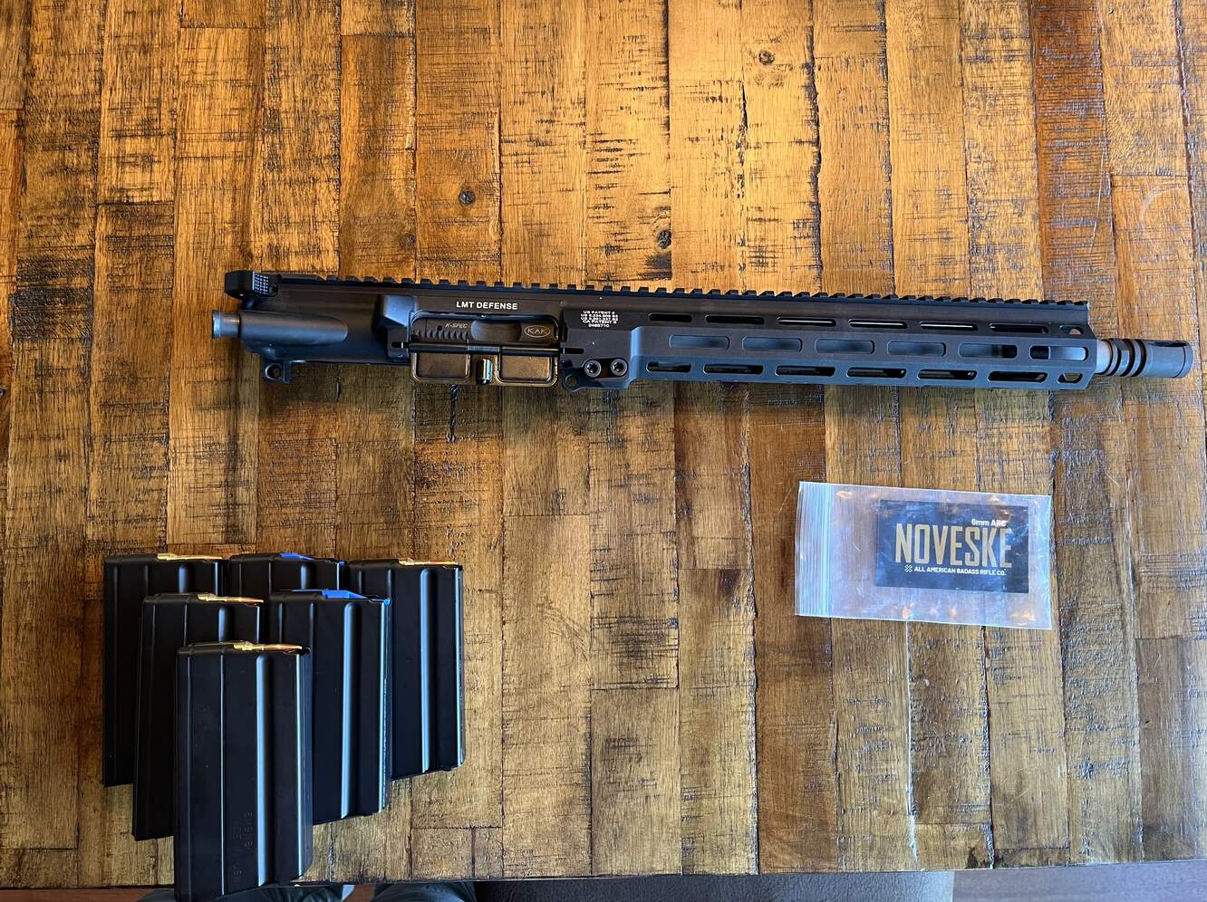 Selling my LMT Monolithic MRP Upper with a 6mm ARC Noveske 12.5" Barrel. It is literally brand new with zero rounds through it. All items listed are included, not willing to part it out. LMT MRP Mono Upper Noveske 12.5 inch 6 ARC barrel done by D Wilson KAK down vent BCG Noveske Head Spaced Bolt Geissele Charging Handle Pinned Noveske gas block Six 15 round 6 ARC Mags 60 rounds of hornady black