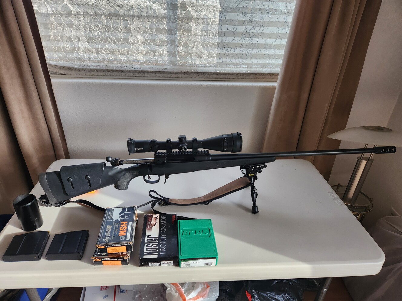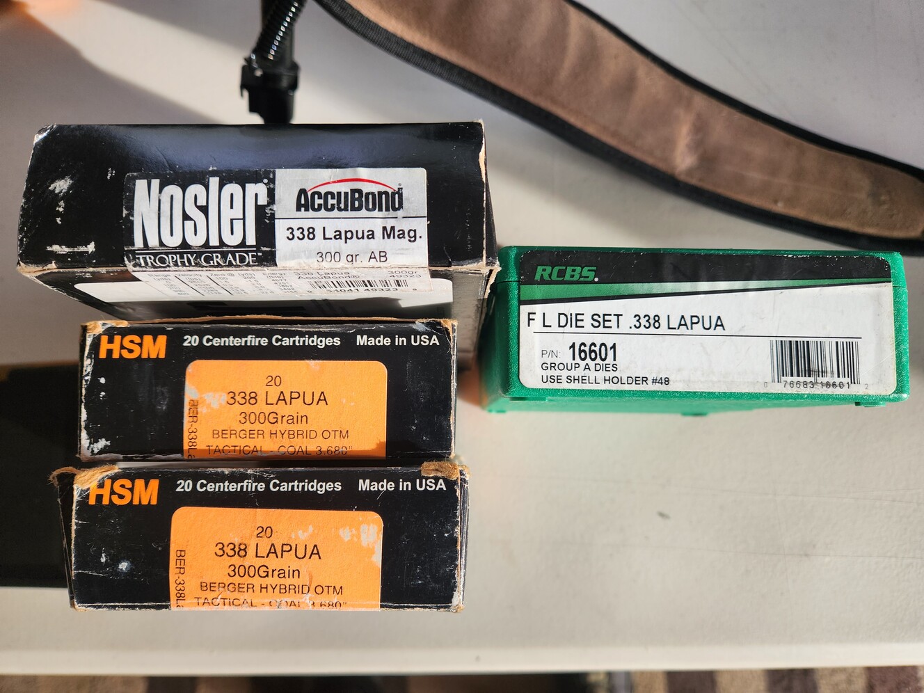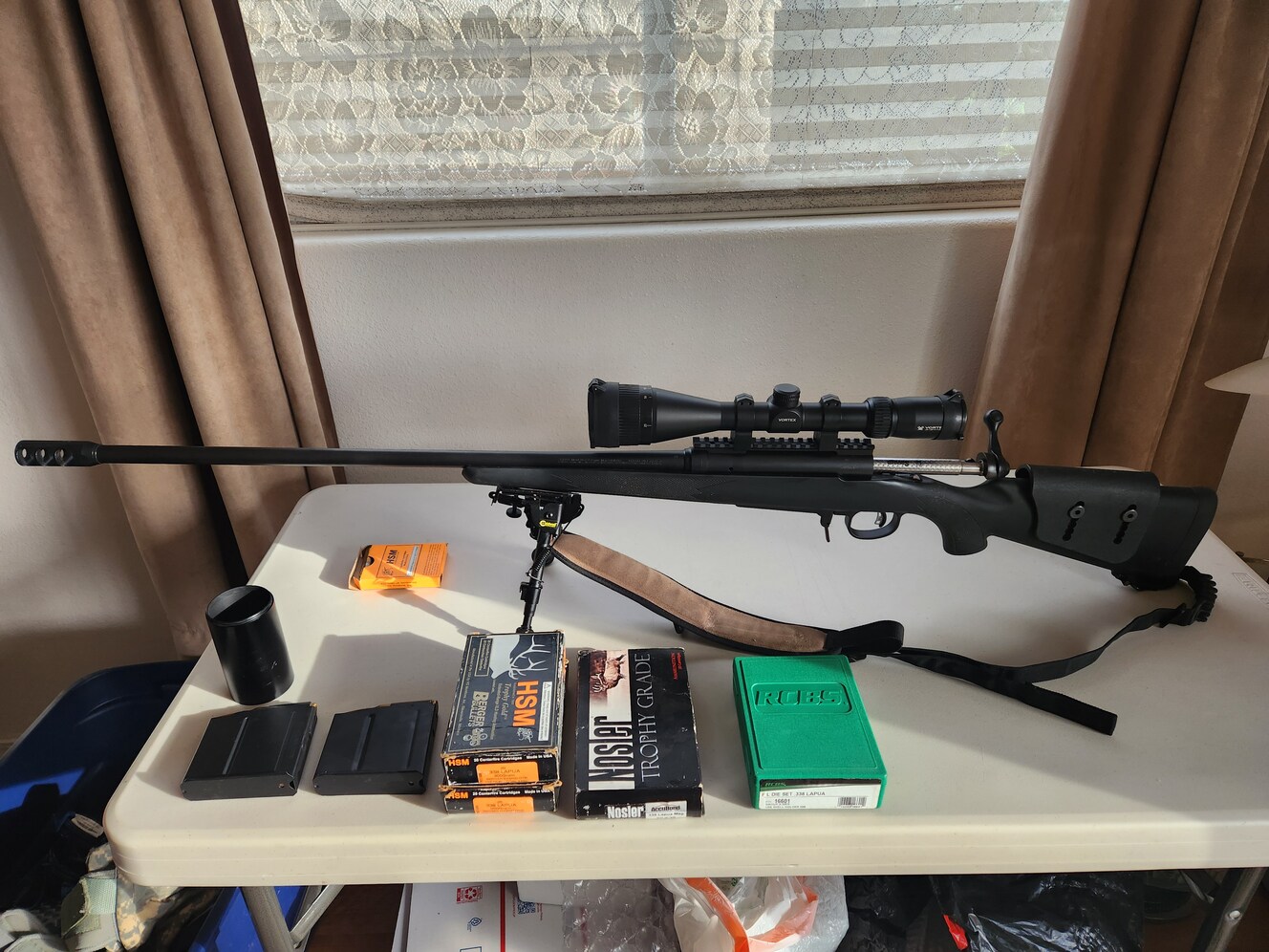 Savage 111 Long range hunter in 338 Lapua Magnum I bought a second 5rd mag for it. Comes with 2 - 5rd mags, Shock absorbing sling, Bipod, Vortec 6x24x50 w/sunshade and flip-up rain caps, 70rds 300grain ammo, RCBS reloading die set. I bought this rifle with the intent to dive into long range shooting but have since changed my mind. It's all set up ready for range or hunting trip. I used it this year for moose hunting. Great rifle I would like to sell it all as a package for $2100 for trades or partial trade I want to get a Ruger Guild gun in 375 Ruger mainly consider 416 Ruger and 30-06 plus cash Text or email Thank you