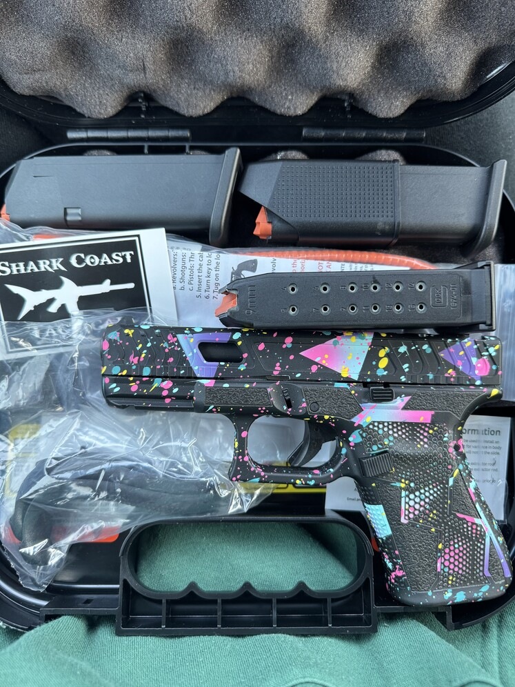 Pre-owned generation 5 Glock 19 with Shark Coast Tactical “80s night” customizations. Never been fired. Comes with 3 magazines + Loader and lock. Pretty firm on price but fair negotiations welcome.