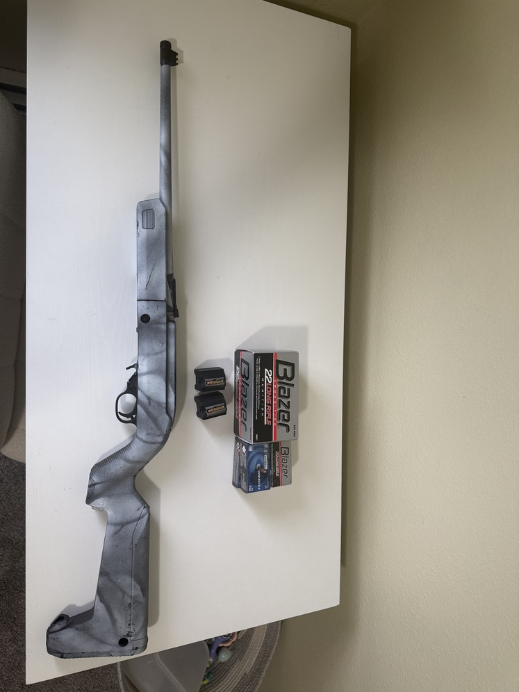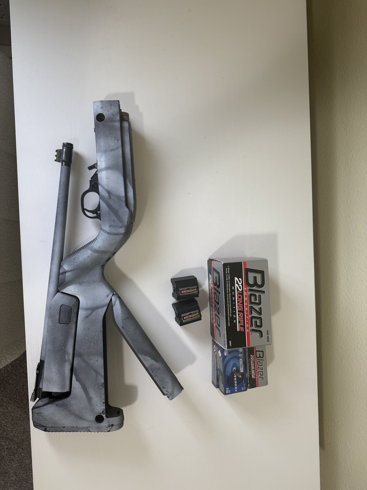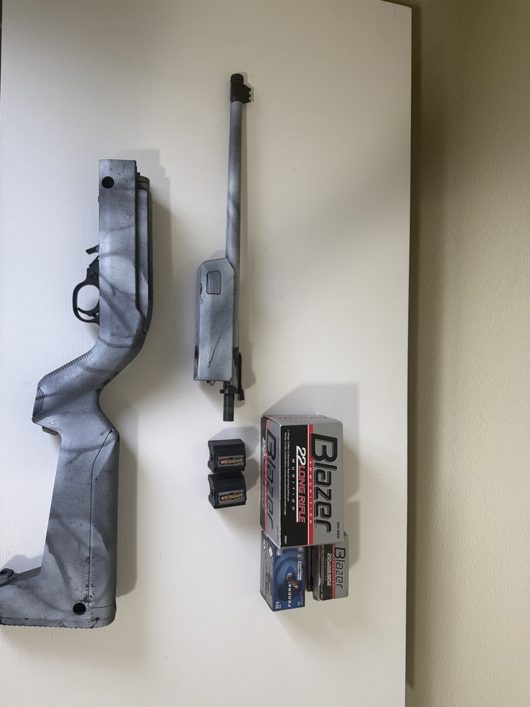 It’s a .22 LR. You can take it apart and throw it in a bag for hiking. I’m getting rid of because I haven’t used it and we are moving soon. Comes with everything in the pictures.
