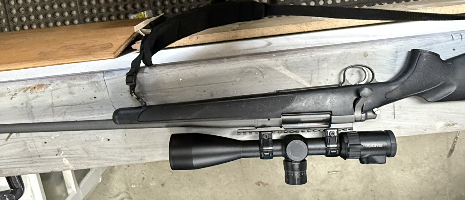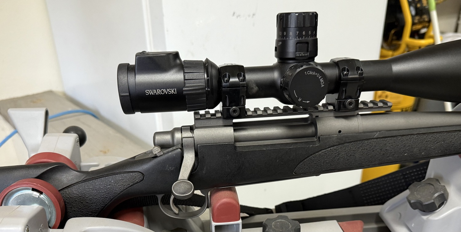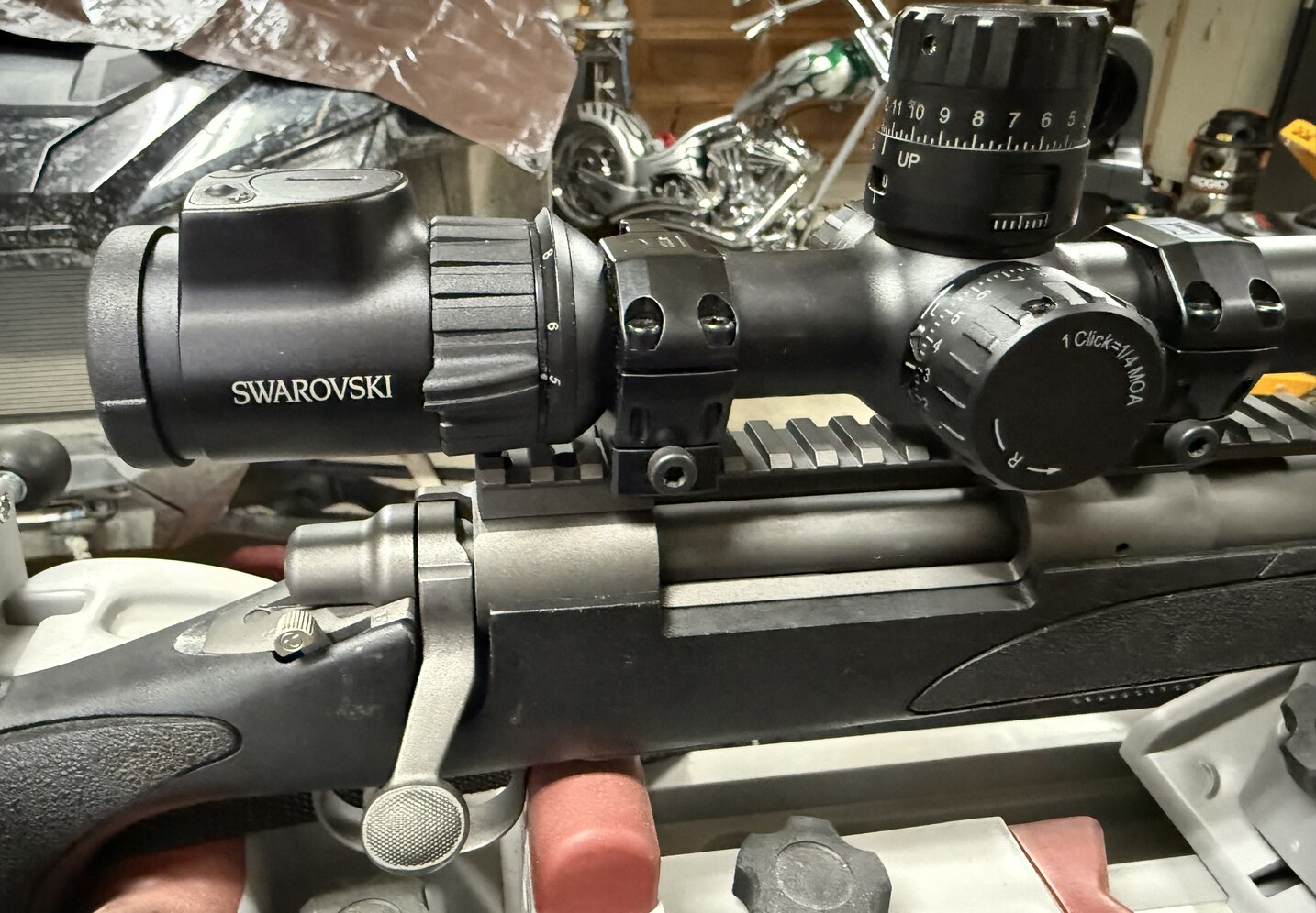 Remington Model 700 chambered in 300 RUM. New barrel with muzzle brake with less than 40 rounds through it. All Gun has been cerakoted, Timney trigger installed. Scope is a Swarovski X5i 5-25x56 with illuminated reticle mounted in Zeiss rings on a Leupold rail. Buying a house so regrettably, some stuff has to go.