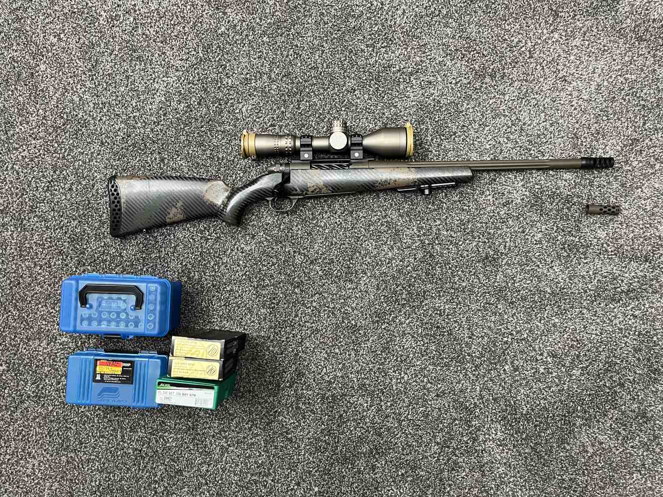 Selling my Weatherby MK V Backcountry in 338 WBY RPM. Perfect Alaska rifle set up especially for the backcountry hunters. Weighs in 5.5 pounds without optic. and about 7.25 with optic. Minimal rounds down the barrel and comes with additional brass. dies. and ammo. Optic on top is a Nightforce NX8 2.520x50. it has the MOAR reticle and is brand new and still not sighted in yet. Affixed to the scope are Nightforce Rings. The Weatherby Mark V Backcountry 2.0 BoltAction Rifle features a rugged carbon fiber Peak 44 Blacktooth stock that delivers a toughtobeat combination of strength and minimal weight. A 2ndgeneration 3DHEX recoil pad soaks up felt recoil. making this hunting rifle a real joy to shoot. The fluted barrel is contoured and includes an Accubrake ST that tames the harshest loads. All Mark V riles boast a subMOA guarantee. and the externally adjustable TriggerTech trigger has zero creep and supershort over travel. A Cerakote finish delivers exceptional protection against corrosion and wear. This Weatherby rifle has a 54 bolt throw that allows fast cycling and tons of scope clearance for your knuckles. plus the deeply fluted bolt ensures smooth performance. The Weatherby Mark V Backcountry 2.0 BoltAction Rifle has a removable bolt knob so you can customize the bolt handle to your preference. Lightweight. durable Peak 44 Blacktooth carbon fiber stock. Fluted. contoured barrel tipped with an Accubrake ST. SubMOA guarantee out of the box. 3DHEX recoil pad soaks up recoil. Easily adjustable TriggerTech trigger. Corrosionresistant Cerakote finish. Fluted bolt with removable head. 54 bolt throw.