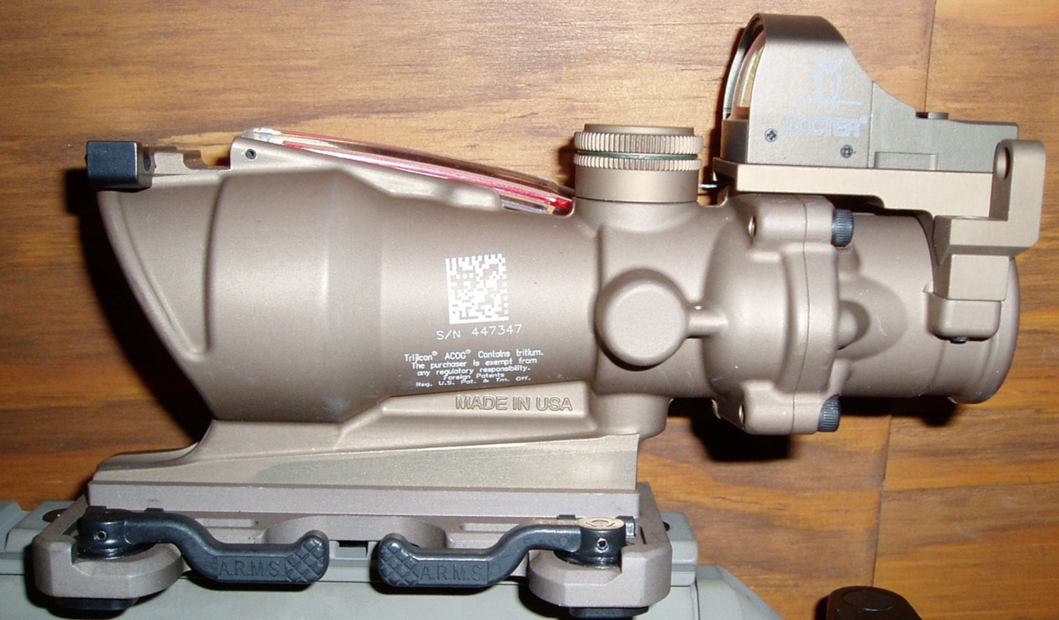 The Trijicon 4x32 FDE ACOG Dual Illuminated Red 5.56 Reticle & RMR is a high-quality rifle scope designed for shooting sports, specifically for rifles in the .223 caliber. With a fixed magnification of 4x and an objective lens diameter of 32mm, this scope offers a clear and precise view. It features a crosshair reticle in red color, illuminated by fiber optics and tritium, ensuring visibility in various shooting conditions. The ACOG Dual Illuminated Reticle has a Bullet Drop Compensating (BDC) feature for accurate shots and is equipped with a Docter red dot sight for enhanced aiming capabilities. This lightweight and durable scope is perfect for competitive shooting and tactical applications. Deal includes Trijicon TA31-ECOS ACOG with quick release mount, Docter Red Dot sight with cover and backup iron sights. factory storage case, LENSPEN, lanyard assembly for adjuster caps, Trijicon logo sticker, manual for SU-237 PVS sight unit and Scopecoat cover. $1500 obo.