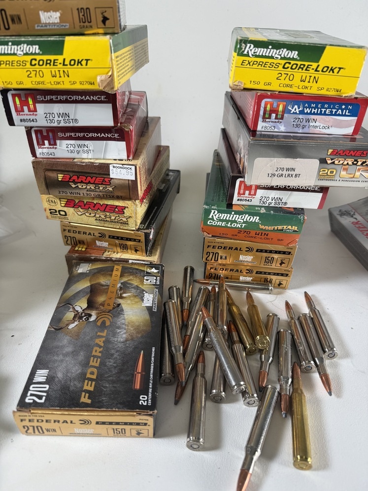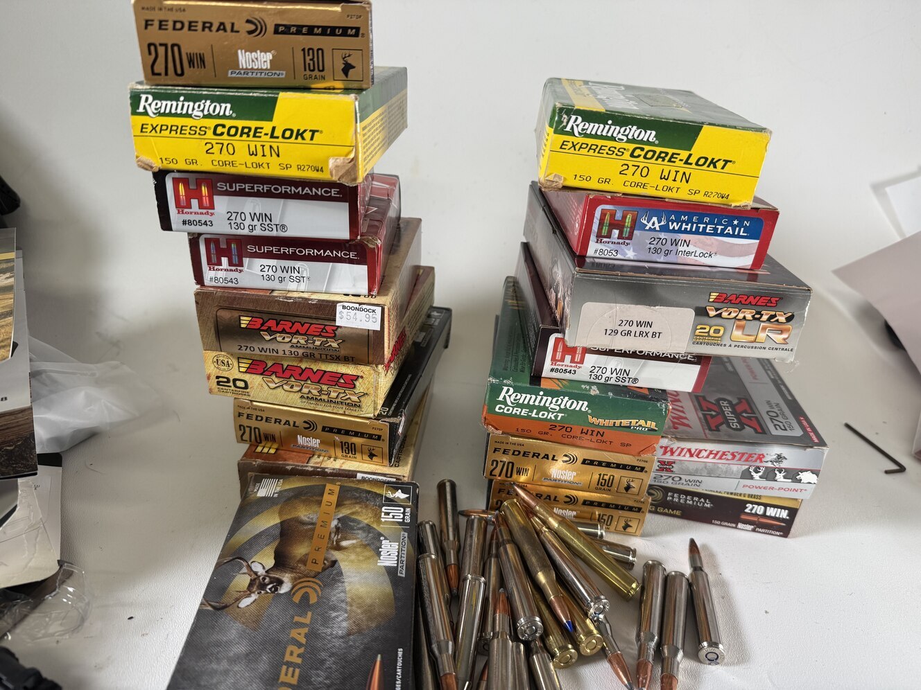 I have well over 300 rounds of quality hunting ammunition in 270 Winchester. Only selling because I don’t have a 270 anymore. Federal, Barnes, Remington, and Hornaday. Great deal. No trades at this time.