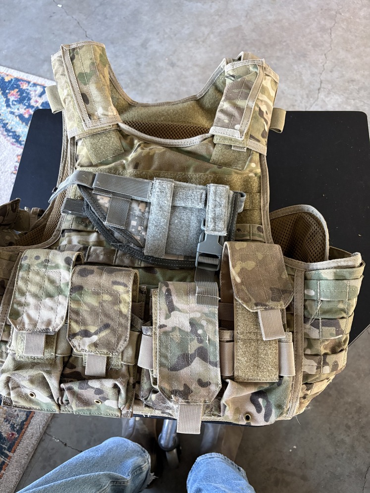 Condor tactical plate vest with 4 magazine holders pistol holder and bullet proof plates. Firm on price. Consider trades.Vest alone was 250.00. Over 500.00invested. Never worn been in closet.