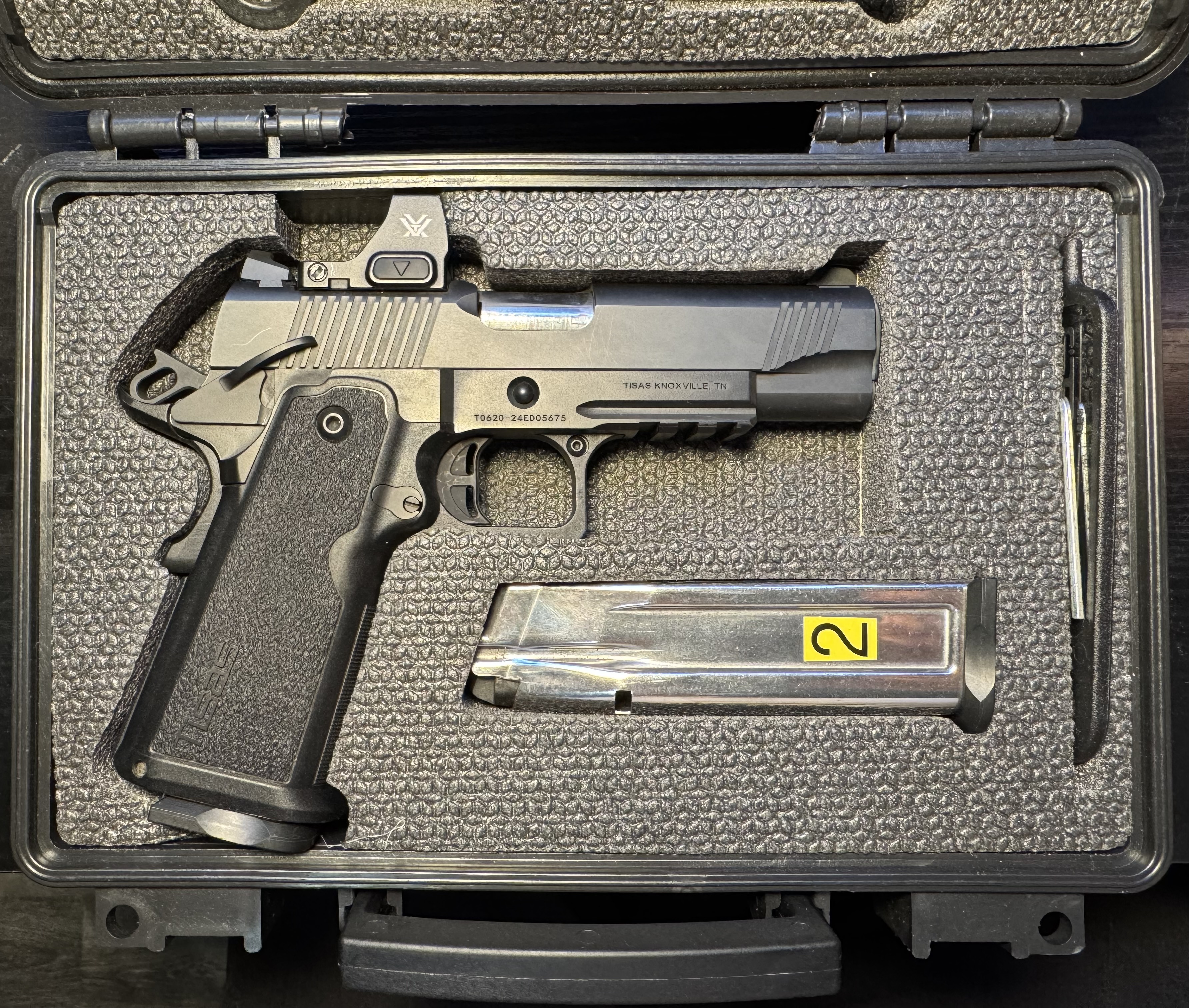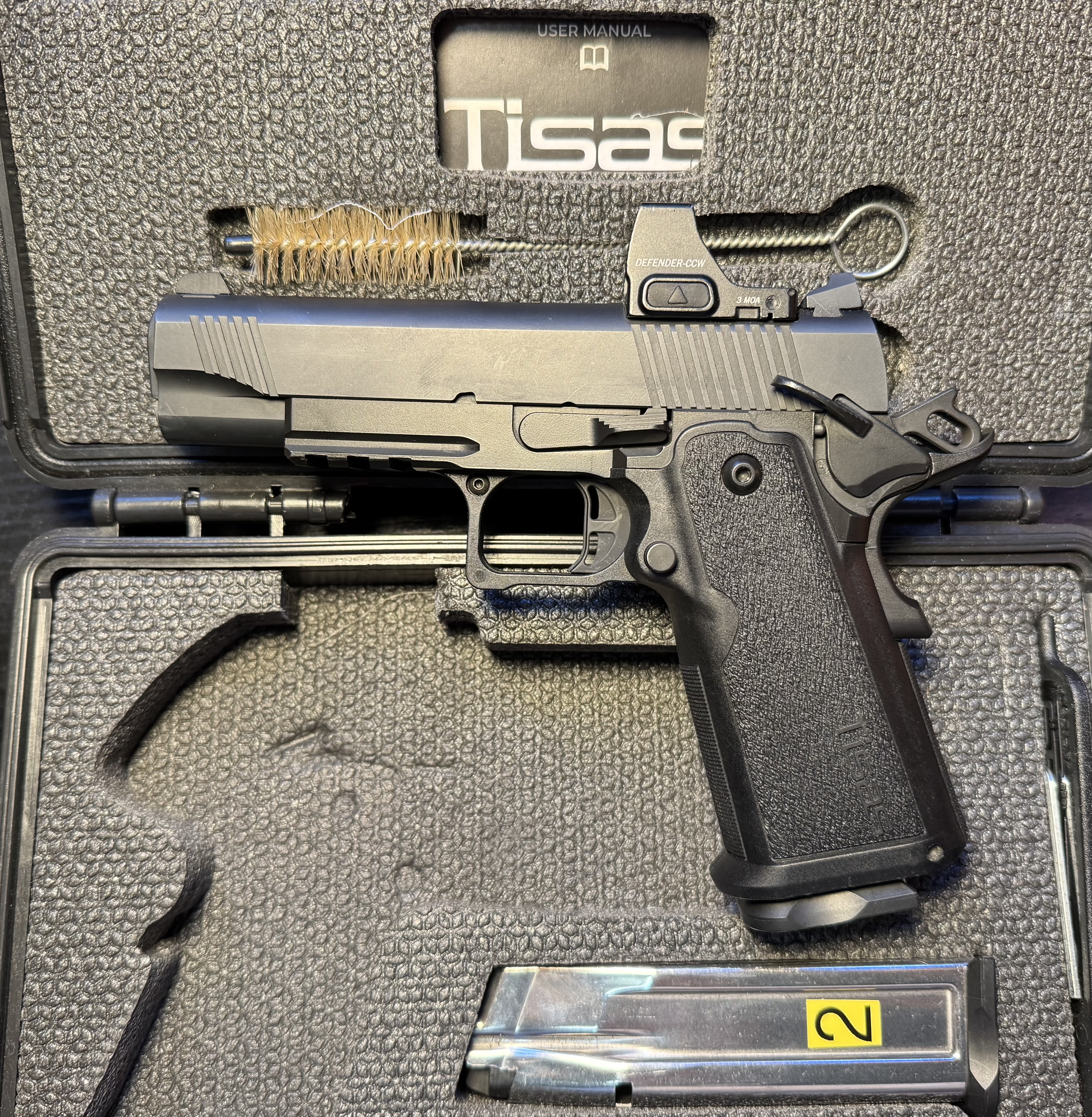 For sale or trade double stack 2011 in 9mm by Tisas. Excellent fit and finish with manufacturing that punches well above its weight class. All machined internal and external parts no MIM parts. Cut for red dot (RMSc pattern) and currently has mounted and zeroed Vortex Defender CCW 3moa. Comes with original case, 2 mags, competition holster. Overall a great shooter that’s given me zero issues whatsoever in the 750 rounds I’ve put through it. Only selling as I switched calibers.