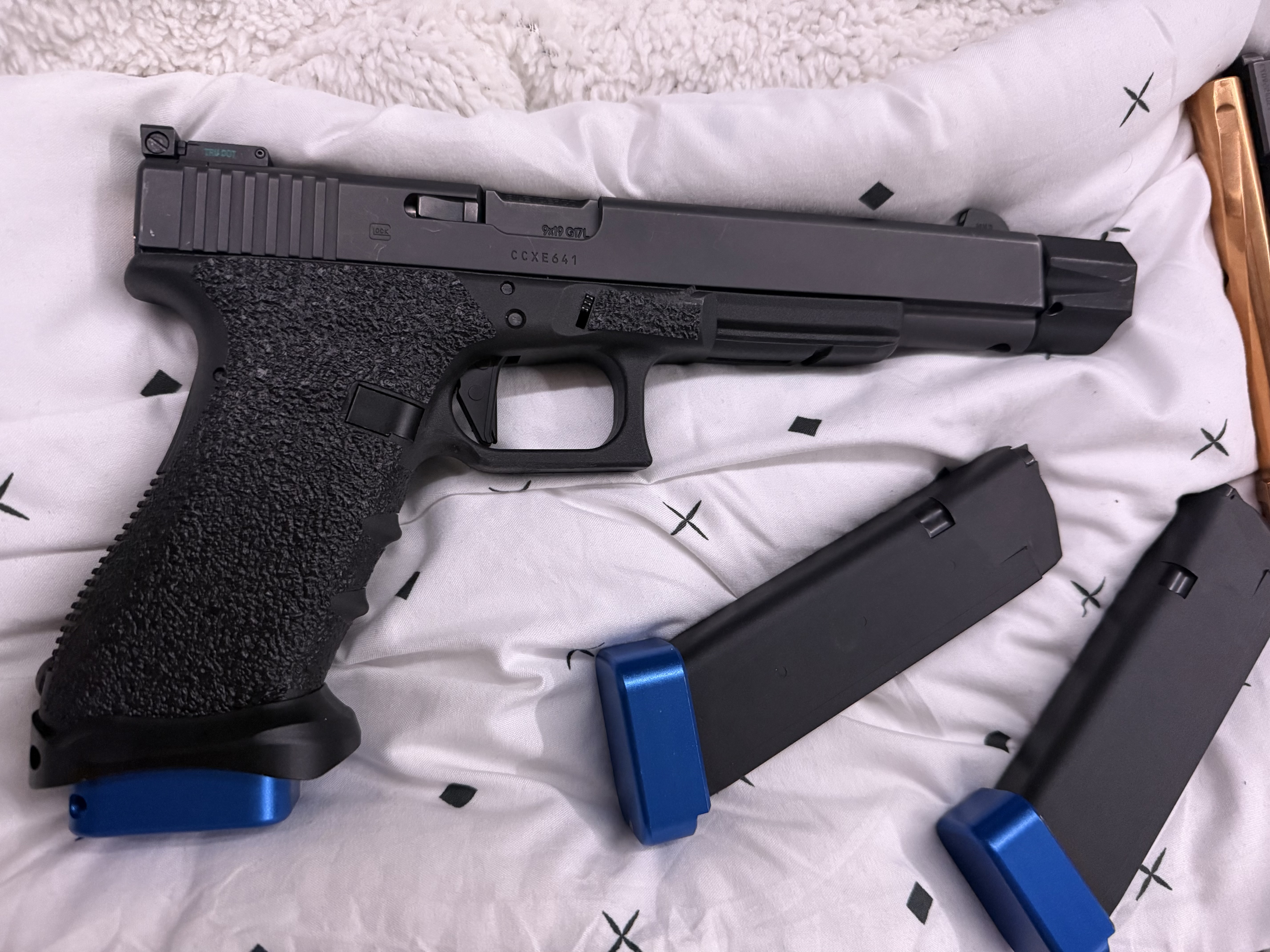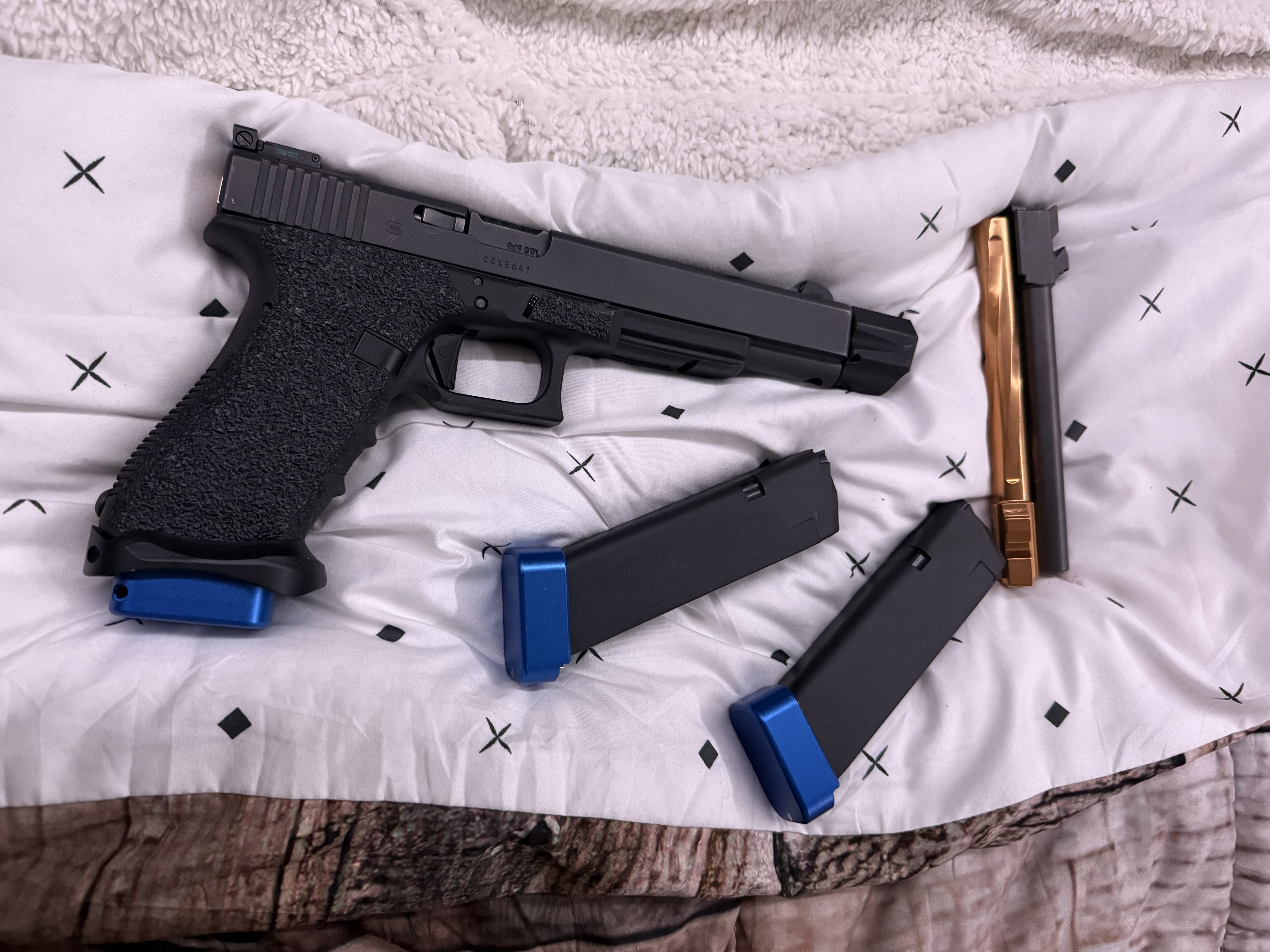 I have a rare Glock 17L longslide with a threaded barrel and compensator installed. Comes with three magazines that all have extension base plates installed. Zev trigger and night sights and two extra barrels. Must be 21 with Alaska drivers license, no felonies, and willing to sign a bill of sale. No trades at this time.