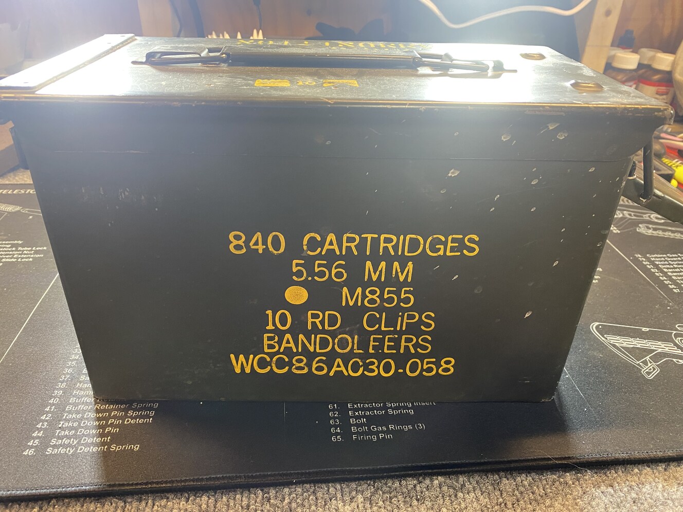 Ammo can with 460 rds of .556 on stripper clips. Mild to moderate oxidation on some of the ammo, should clean easily. $200 obo