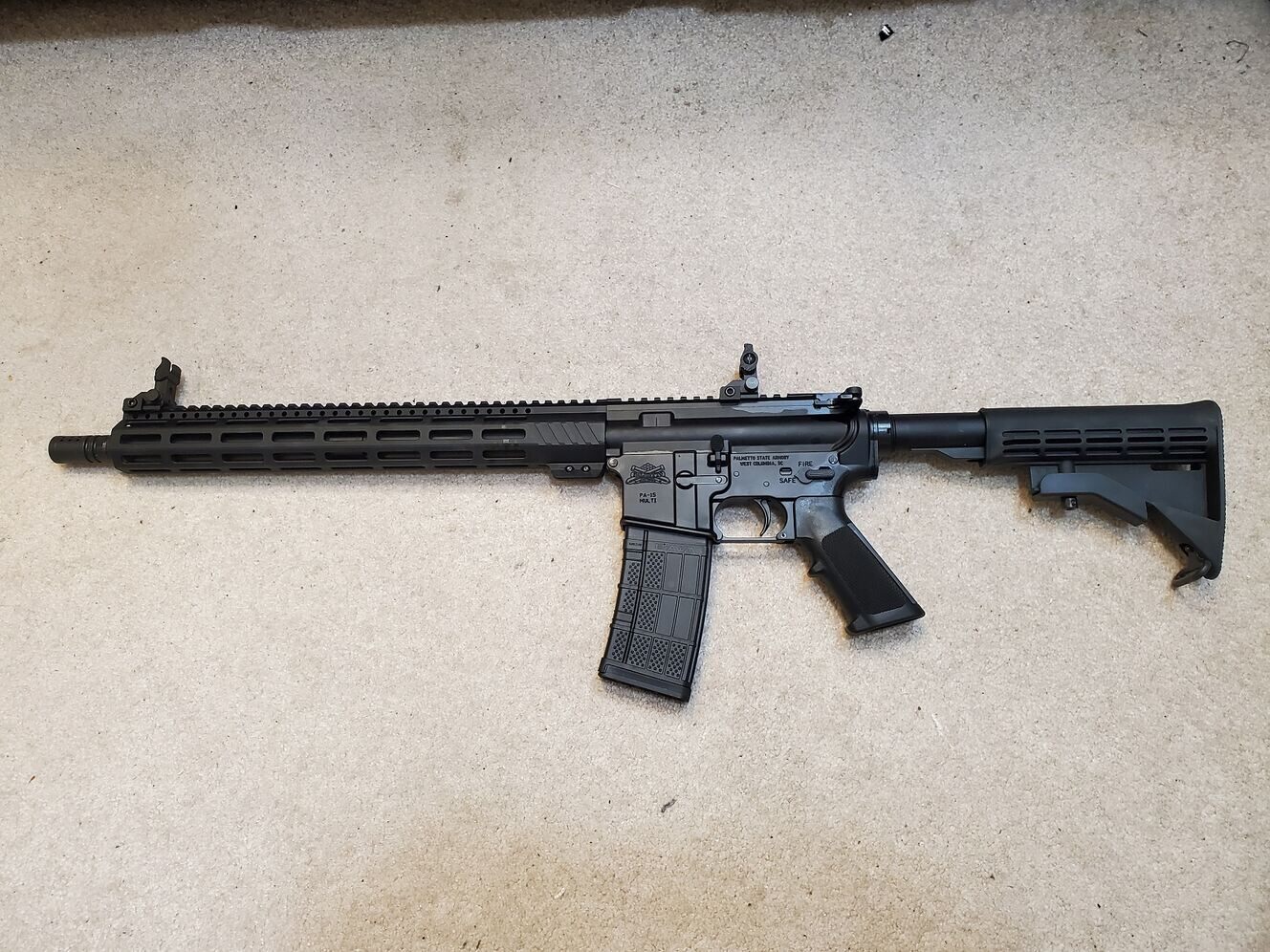 PSA Stealth .458 SOCOM flat-top carbine. 16” 1:14 twist, medium profile 4140 chrome moly steel, black Melonite barrel with a carbine length gas system and steel gas block, Steel low-concussion muzzle device. .458 large port upper receiver & KAK BCG. 12” Mlok handguard, and polymer flip-up sights. Mil-Spec LPK, stock and hand grip. Comes with one Lancer .458 SOCOM magazine. Ready to rock! $995 OBO