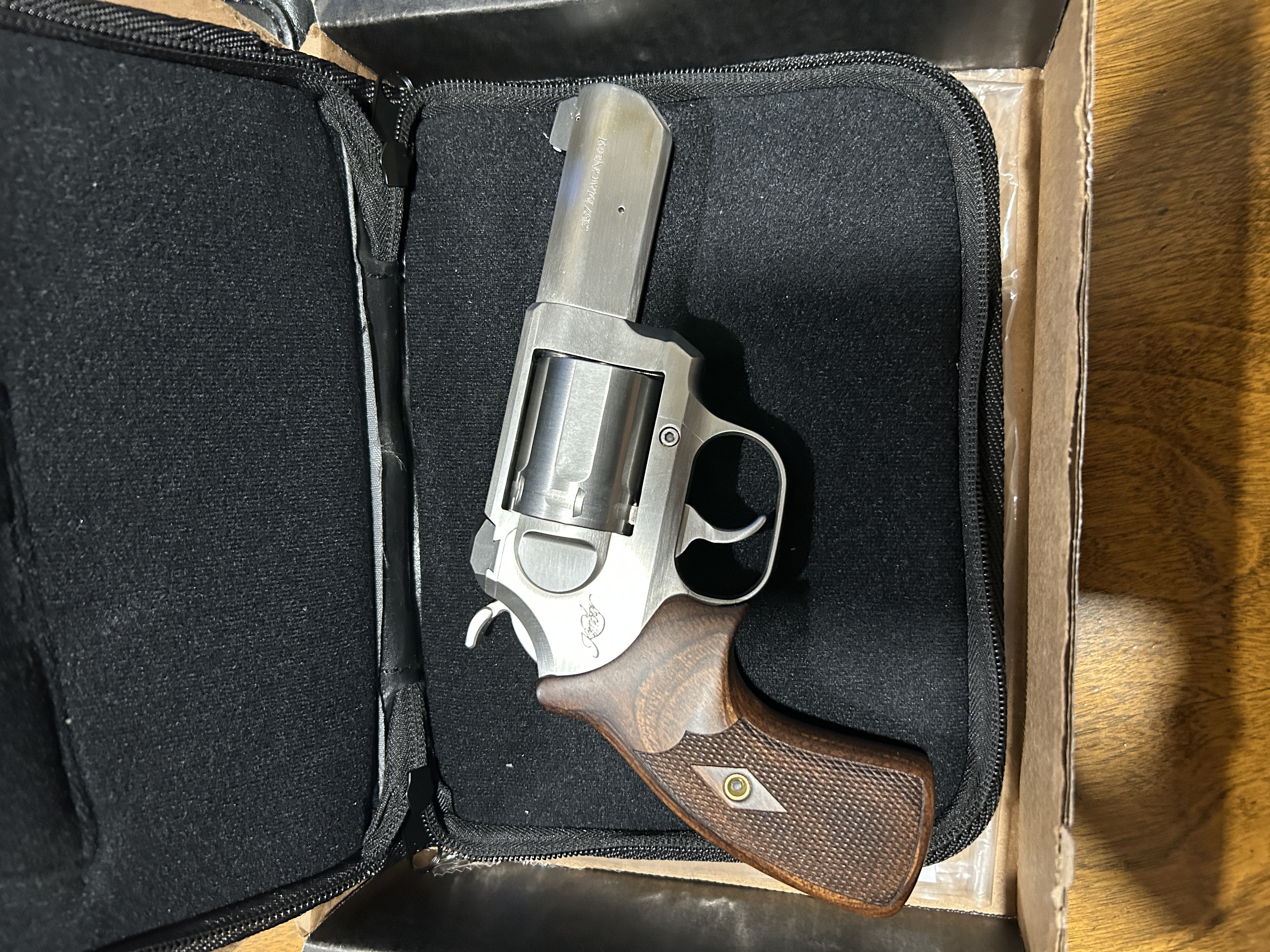 Kimber stainless K6 with 3 " barrel. Lightly used. $850. Will trade for a Ruger Vaquero in .45 Long Colt with a 4" barrel and some cash.