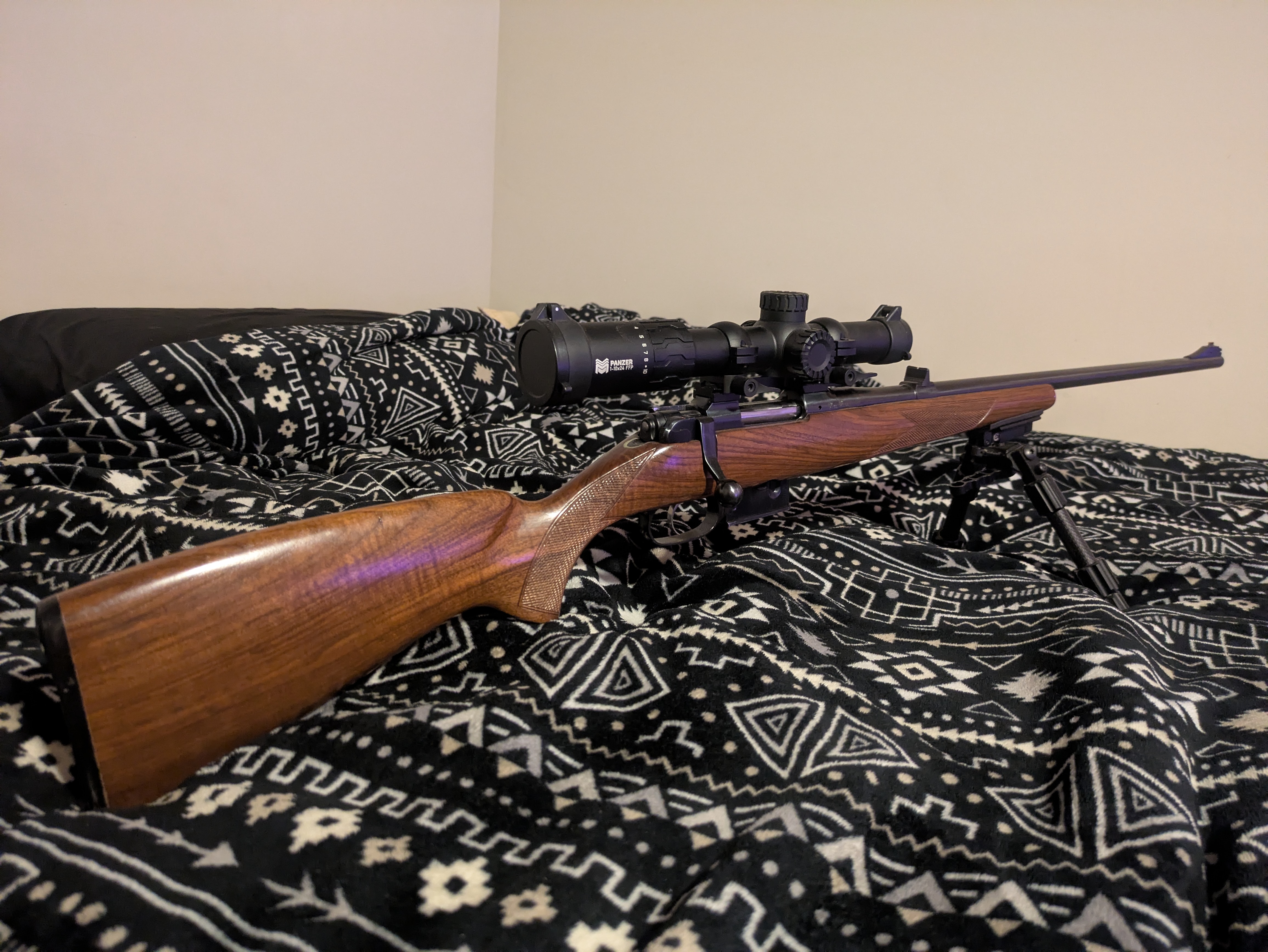 Selling my cz 527. lovely rifle but need some funds for future projects! details below. 223 rem. 22" 1 and 12 twist barrel. Set trigger ( push trigger forward to set for super light trigger pull). Turkish Walnut stock. Detachable magazine. Open sights. Rifle bedded and aluminum pillars installed. Shoots lighter bullets the best but i have had luck with 62 gr bullets. 1" to 1.5" MOA at 100 yds with 45 and 50 grain loads. best 3/4" moa with federal 45 gr varmit load. Only downside is when the rifle is uncocked, there is some bolt handle play, but upon cocking, it tightens up and does not affect rifle function. I have additional photos/ video on request for serious buyers. thanks for looking!. $650 for rifle. $850 for rifle with the bipod and scope as seen in photos. Scope: Monstrum panzer 1-10 FFP. Bipod: Caldwell bipod with adjustable legs.