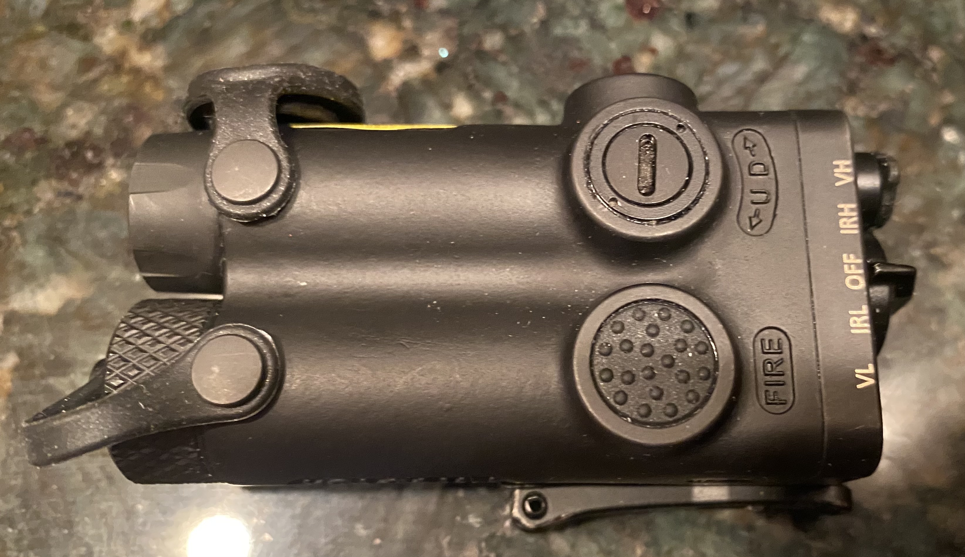 The rear facing selector switch lets the user select between visible low, visible high, IR low, IR high activation using the included remote pressure switch or turn the unit OFF. The LE221R also includes tactile windage and elevation adjustments for a precision zero and a top mounted activation button.