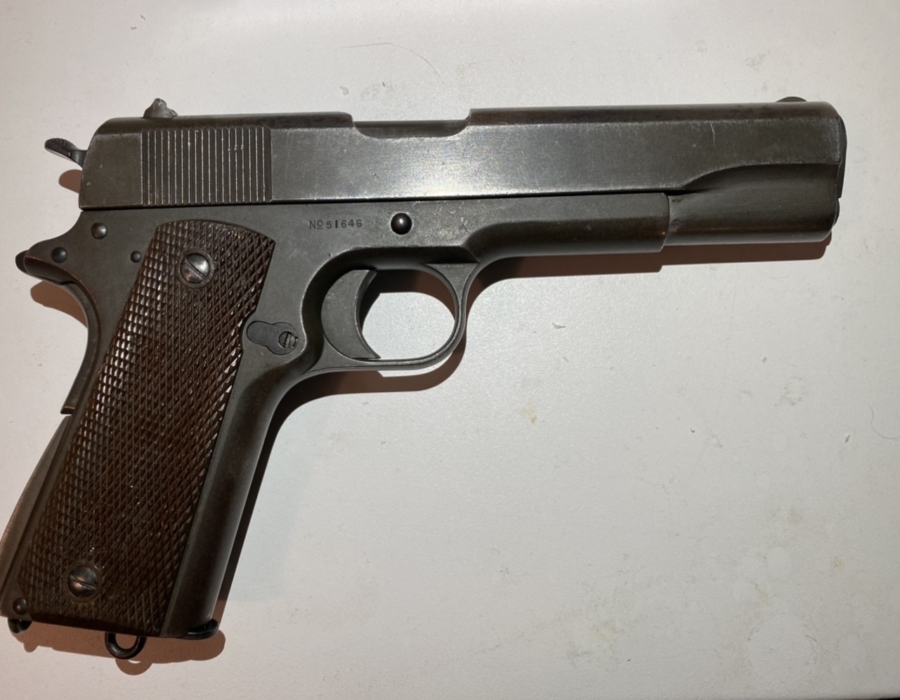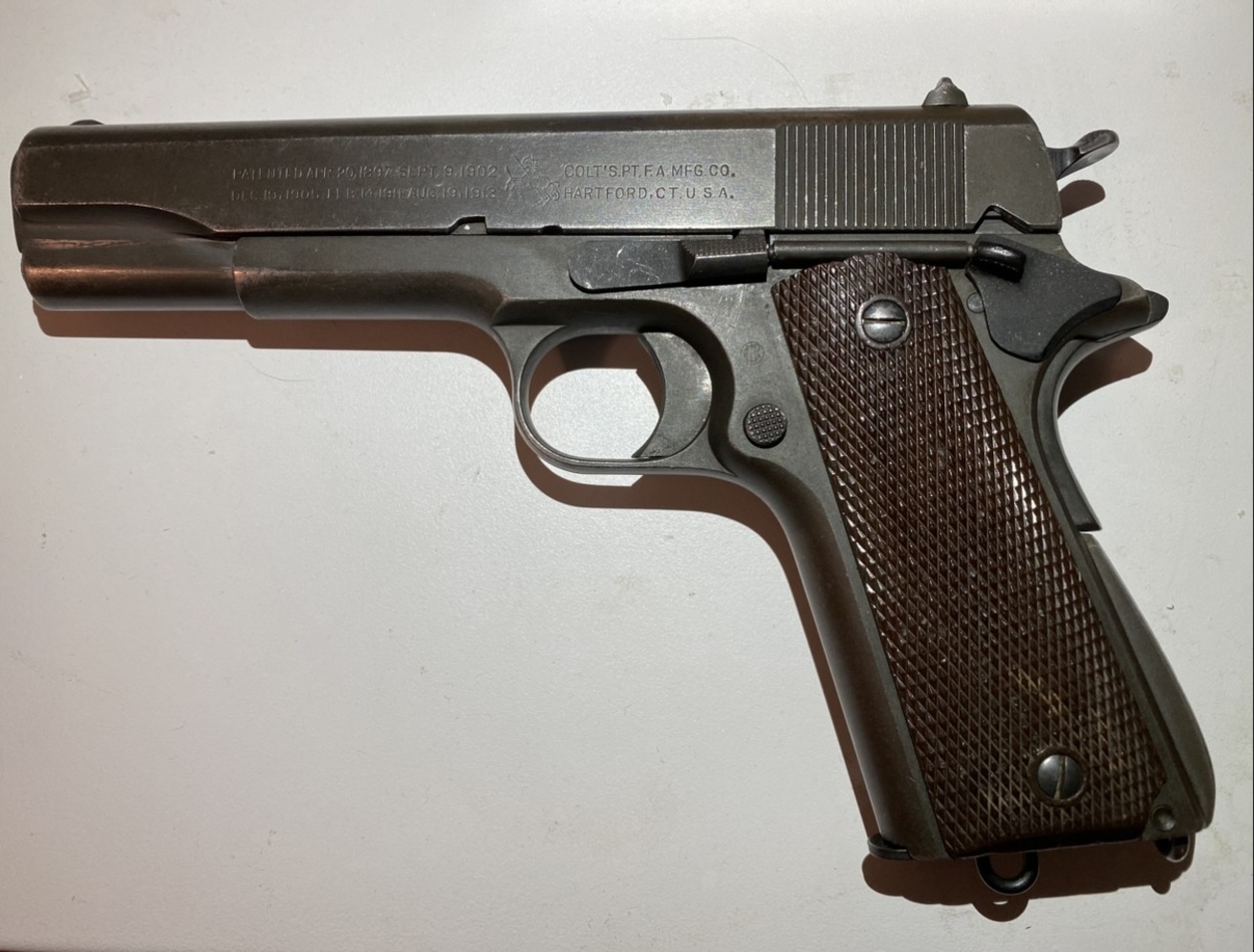 Colt M1911A1 manufactured in 1913 early 5 digit serial, colt lists the serial number as U.S. Military 1911. Major Walter G. Penfield proof mark on frame, P proof on slide, colt barrel and magazine.