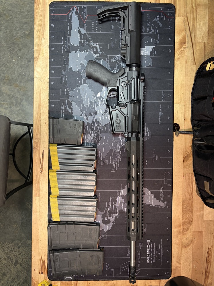 Patriot ordinance factory .308 AR-10 has a JP enterprise handguard and a pws triple port brake. Everything else on it is factory. Has about 200 rounds through it, shoots great, excellent bush gun, very lightweight. Includes five twenty rd mags and one ten rd mag. $2000 new asking $1400
