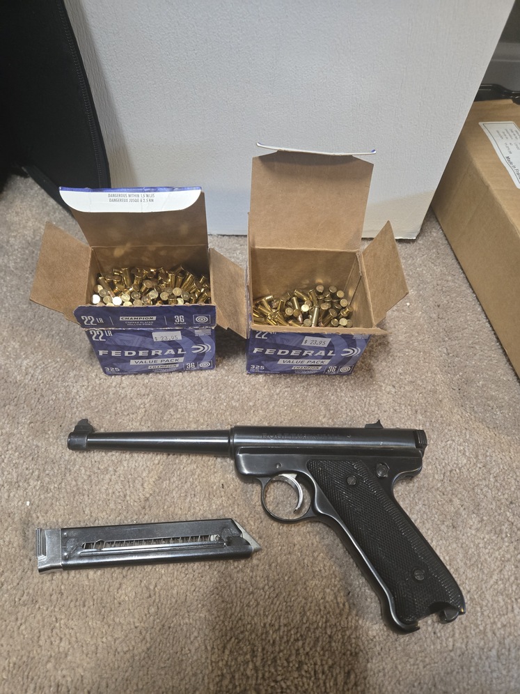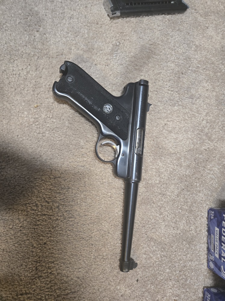 An early model Ruger Standard Model mid 70s best i can tell in very good condition shoots very nicely the few times ive used it ammo included and one magazine