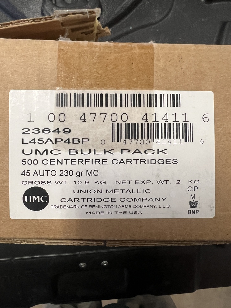 .45 Auto (ACP) Remington UMC 230gr MC (box of 500)