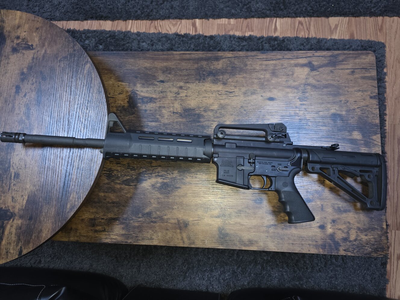 Colt upper/PSA lower 16" AR-15 with A2 site and carry handle. Text