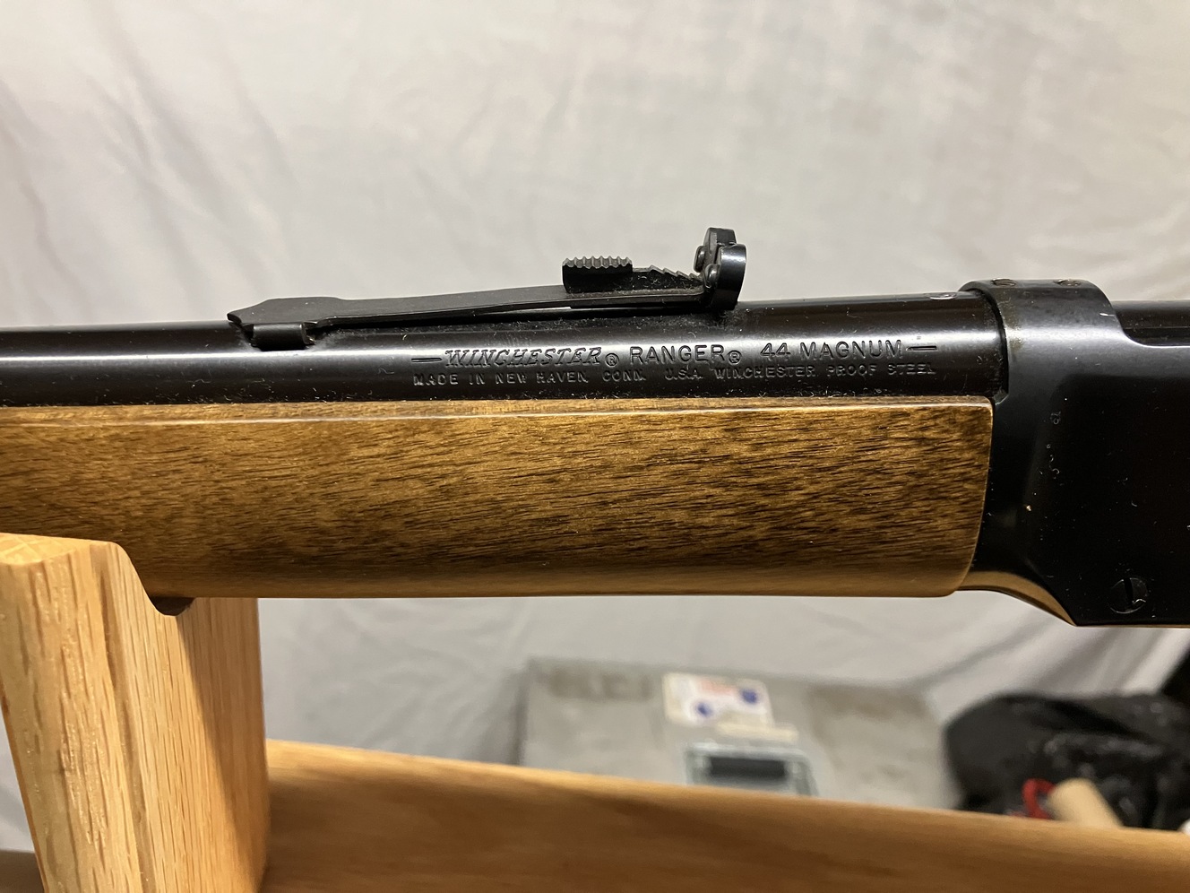 Early AE Winchester lever action 44 magnum pre safety lock bar on hammer. This brand new rifle is perfect for the good American who is a better Alaskan for the wants and the needs to live in this last frontier. This rifle is quick for target sighting and firing. Is able to load 44 special or magnum loads. The receiver is tapped from the factory if you want to mount a scope. The angle eject is easy for fired cartridges. Buy it and be glad you did! Call me! Thanks!