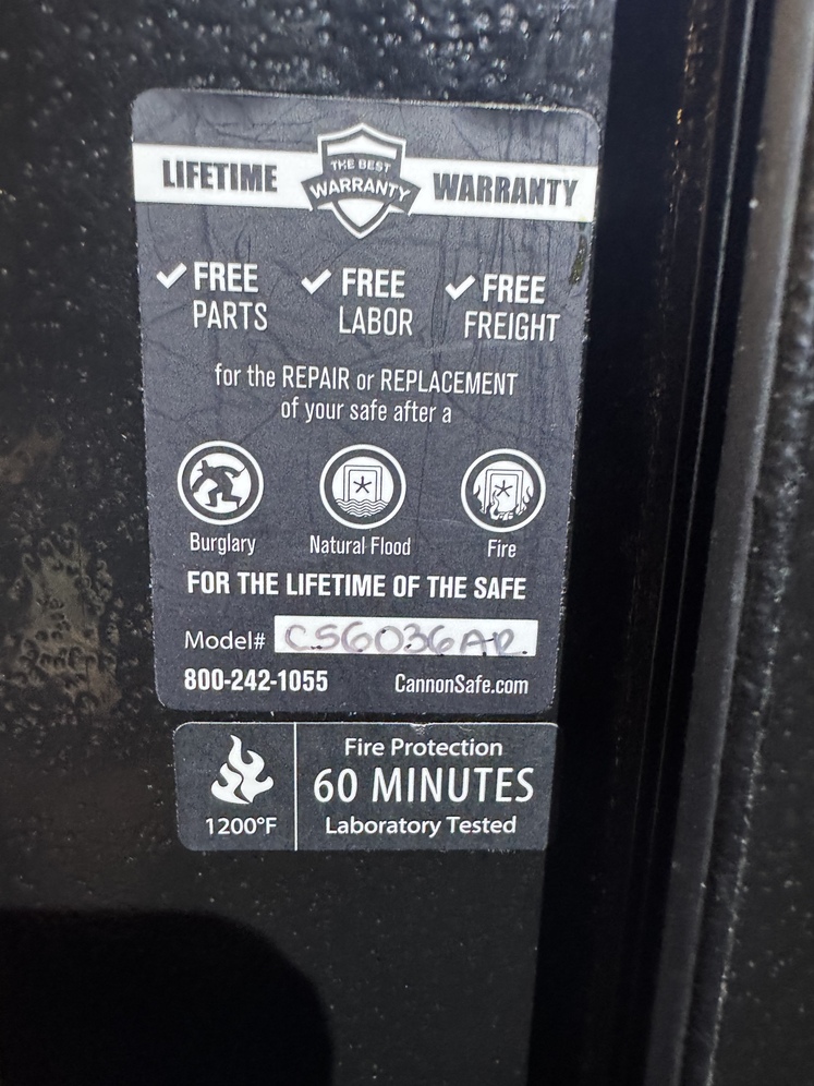Cannon Gun Safe 1200 degree fire rated Perfect condition No shelves