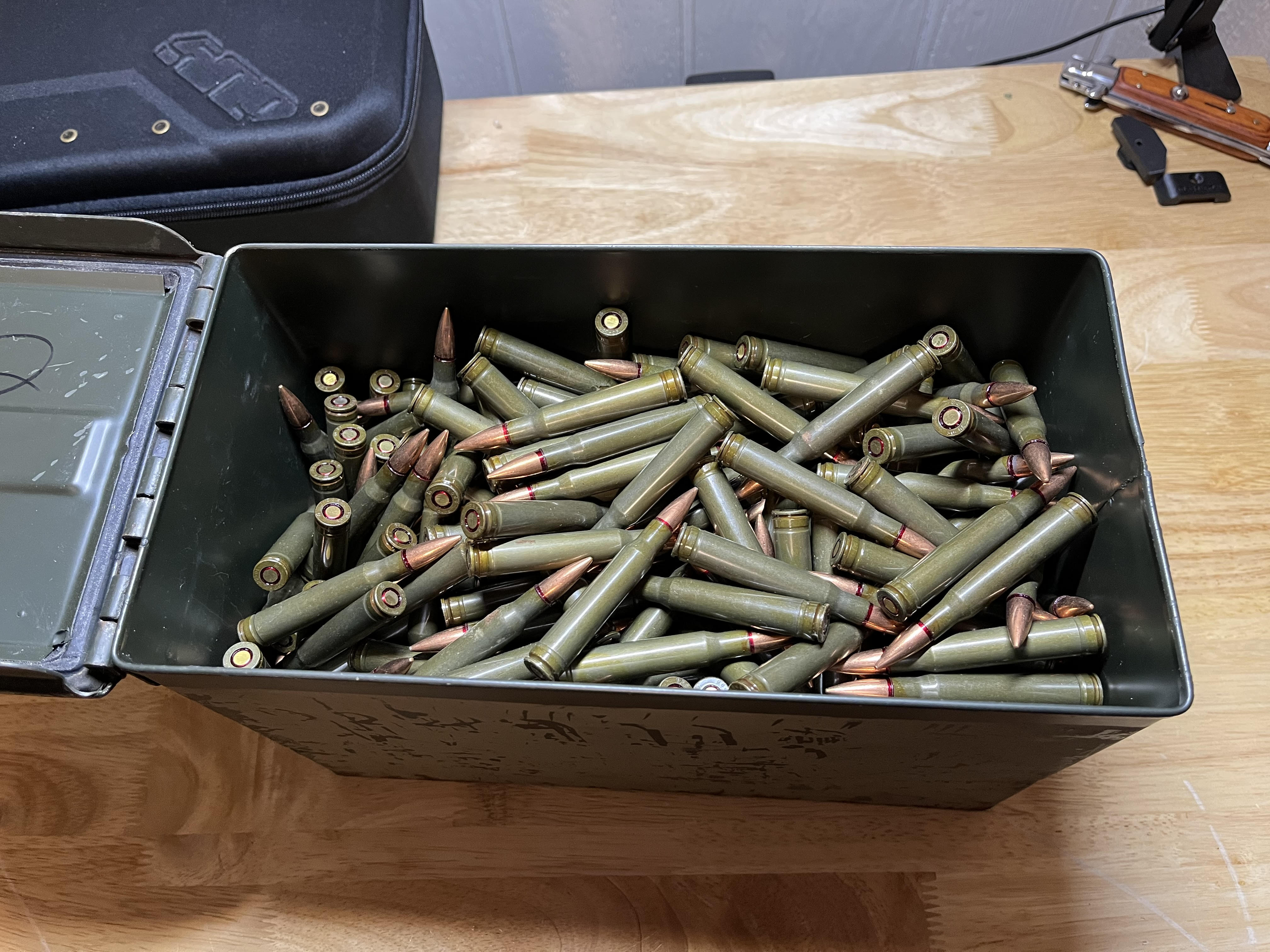 Here is a full 50-cal ammo can full of steel-case Barnaul 30-06 ammo. This is a complete 500 round case dumped into an ammo can. I also have another 500 round case that is still in the cardboard box! I do not have a 30-06 rifle anymore, so I have to sell this at a loss. This ammo is perfectly fine and I shot cases of this for many years without a hiccup. These are my last two cases — one in an ammo can, and the other in the factory box. $400 OBO per case. Make an offer!