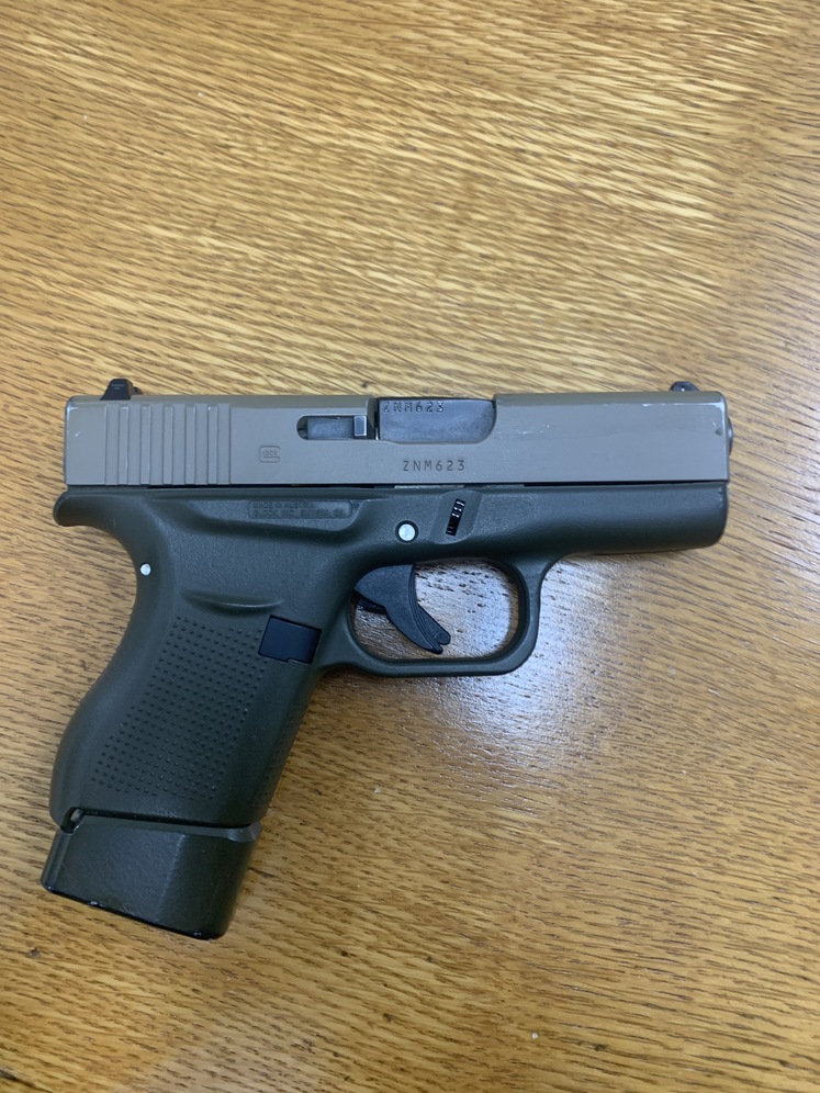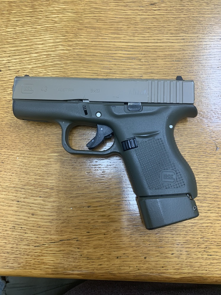 Glock 43, Cerekote OD green/flat dark earth, extended mag release, extended slide release. Taran Tatical mag extension olds 9 rds . Original Box less than 500 rds, some wear/rub marks from cary. Plus holster if I can find it. About $750 invested. More pictures on request.