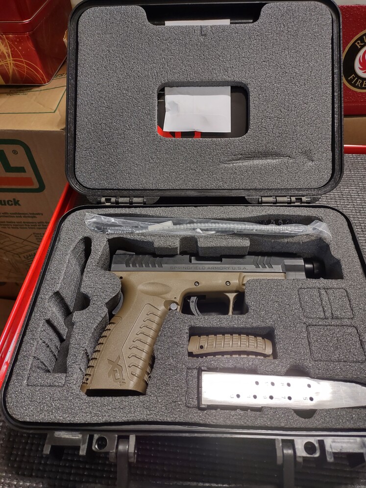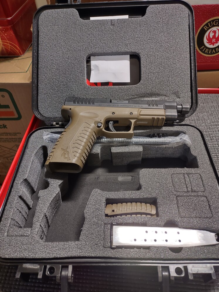 Springfield XDM .45acp . Threaded 4.5" barrel for suppressor. Comes with two magazines, original hard carry case and high sights. Some light holster wear. Less than 500 rounds put thru it. (Not looking for trades.) // Will need to transferred at an FFL.// Asking $425 obo