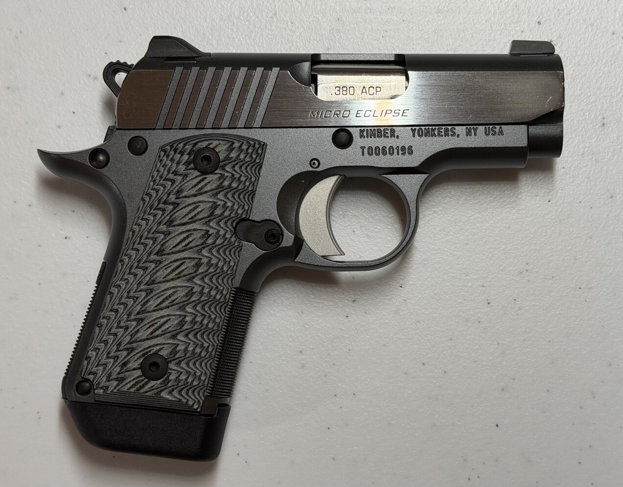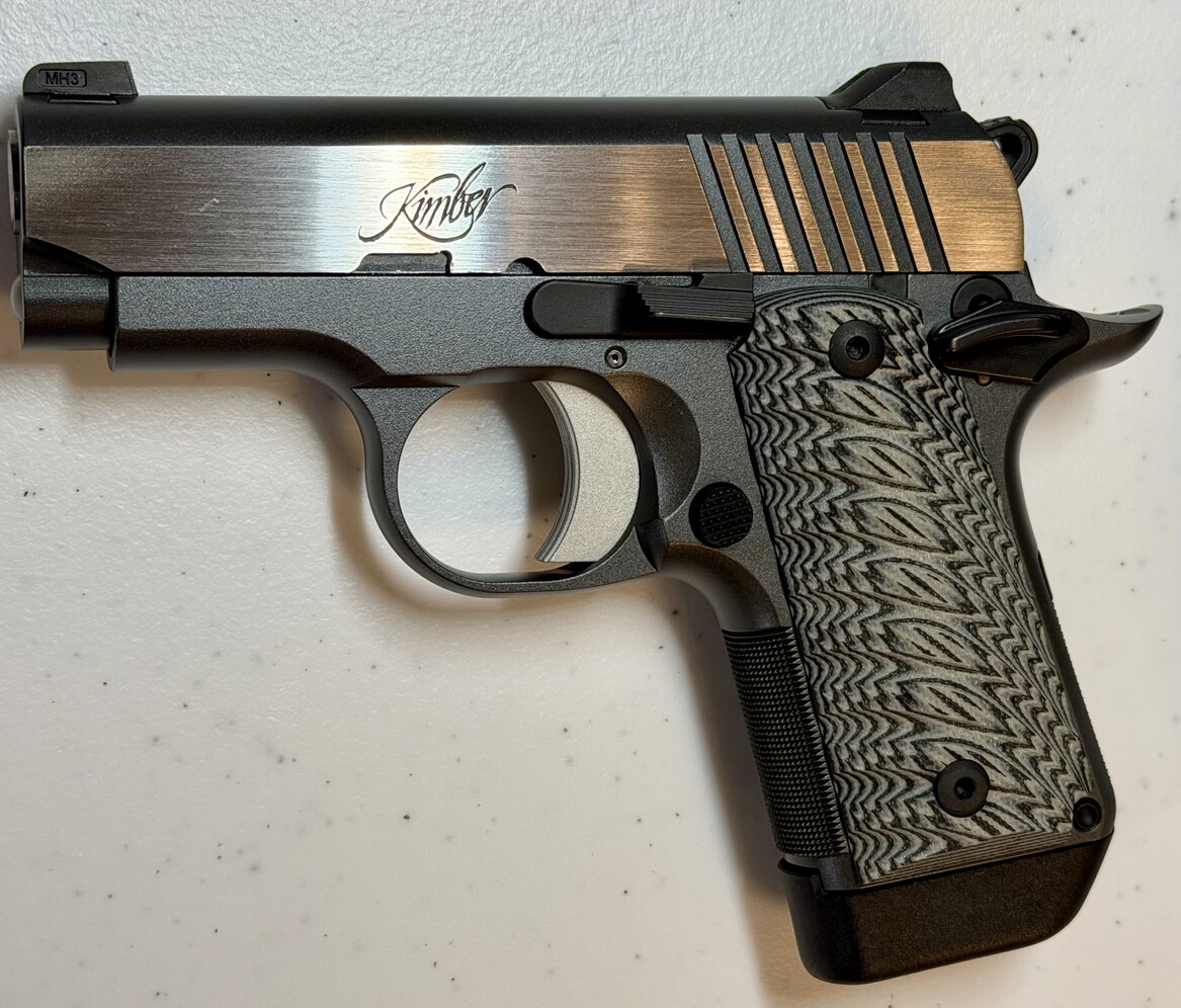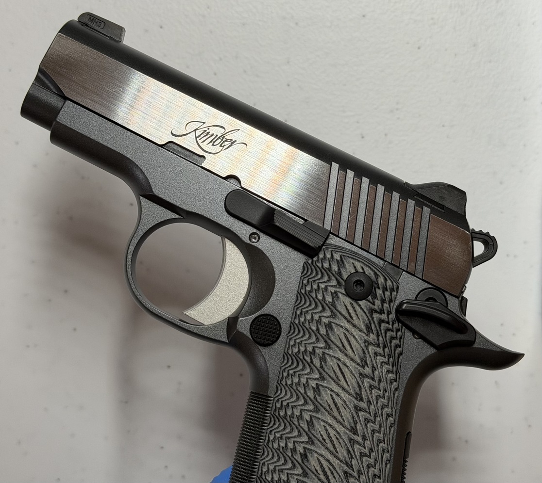 Has spent it's entire life in the safe since purchased new, aside from shooting 25rd with it at the Palmer Indoor Range after purchasing. Performs flawlessly, in like new condition. $860 MSRP. Price is firm, first come first serve. Height (inches) 90° to barrel: 4 Weight (ounces) with empty magazine: 13.4 Length (inches): 5.6 Magazine capacity: 7 Bobbed hammer, thumb safety and magazine release Recoil spring (pounds): 8.0 Full-length guide rod Slide Material: Steel Finish: Matte black, KimPro II Flat top Sights Fixed low profile 3-dot tritium night sights Radius (inches): 3.9 Trigger Solid aluminum, match grade Factory setting (approximate pounds): 7 Frame Material: Aluminum Finish: Charcoal Gray Width (inches): 1.08 30 lines-per-inch front strap checkering Round heel frame Barrel Length (inches): 2.75 Material: Stainless Steel Twist rate (left hand): 16 Ramped Grips G-10 Product Code SKU 3300188