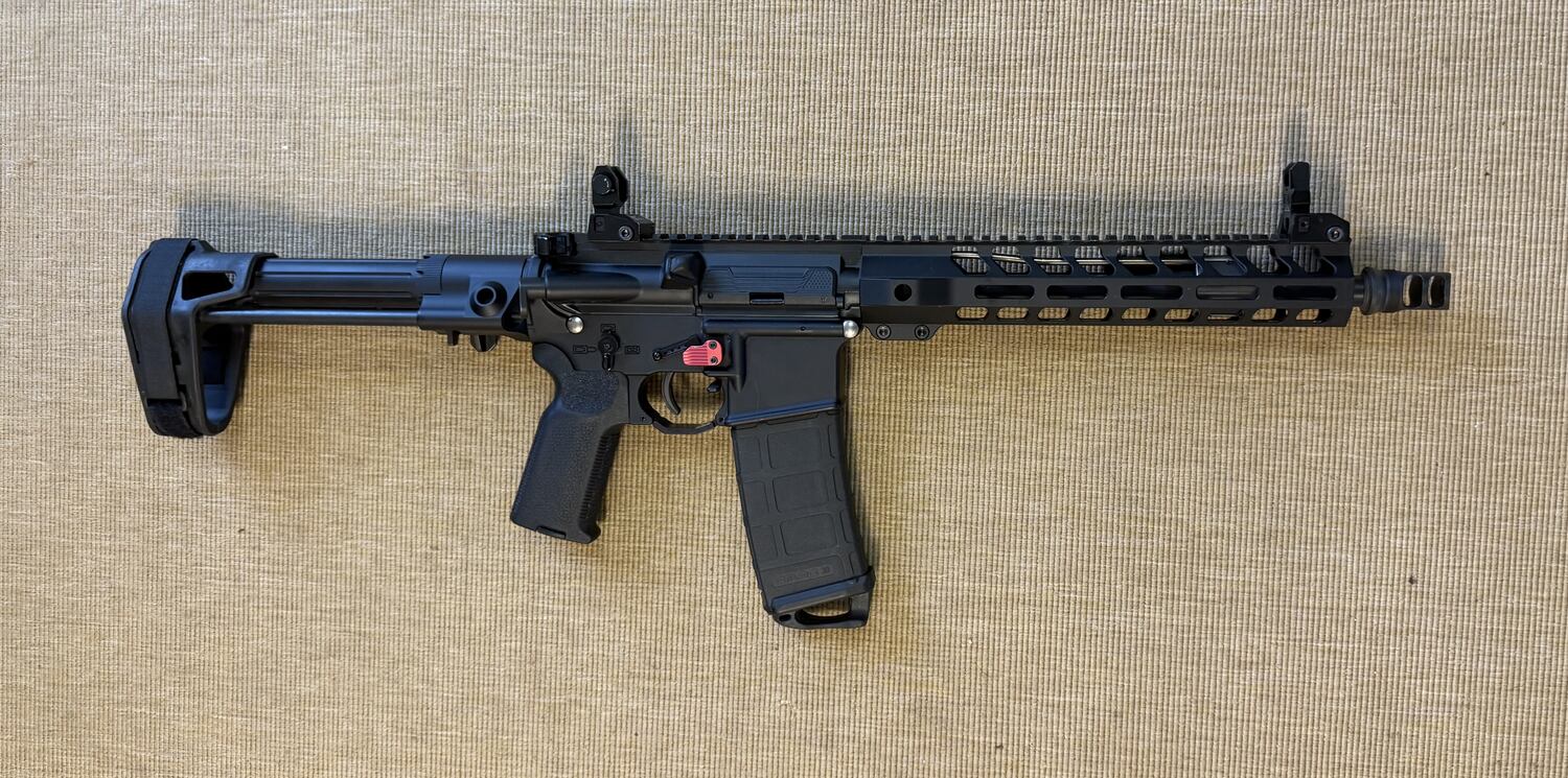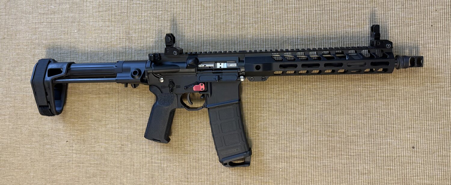Selling my Spikes tactical 5.56 ST-15 pistol, with a 3 position Franklin Armory binary trigger, Fail Zero bolt and carrier, Maxim Defense adjustable arm brace, Fortis stainless steel gas block, Faxion Defence 10.5” barrel with a suppressor ready two stage brake. And fiber optic sights by Votatu.. It fires smoothly and fast. With one mag