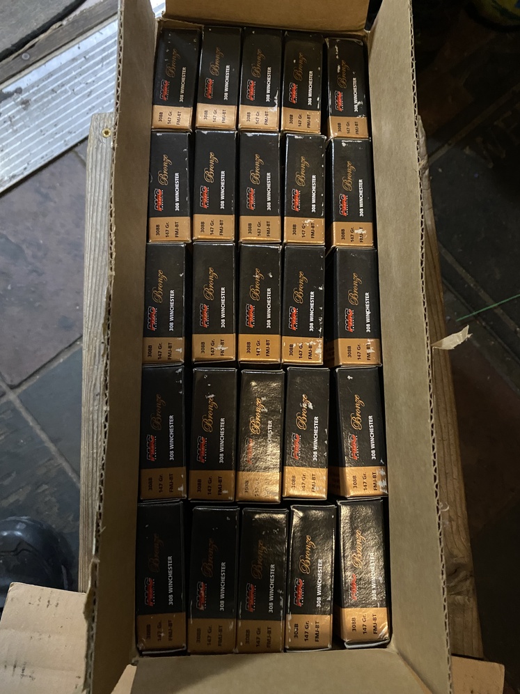 500rd case of 147gr FMJ PMC Bronze ammo. Opened the case for the picture. I meet in Wasilla
