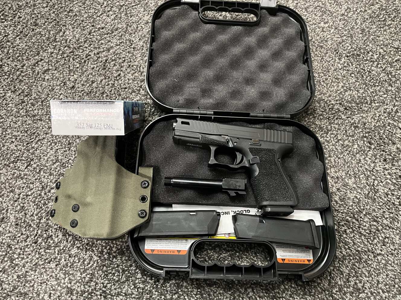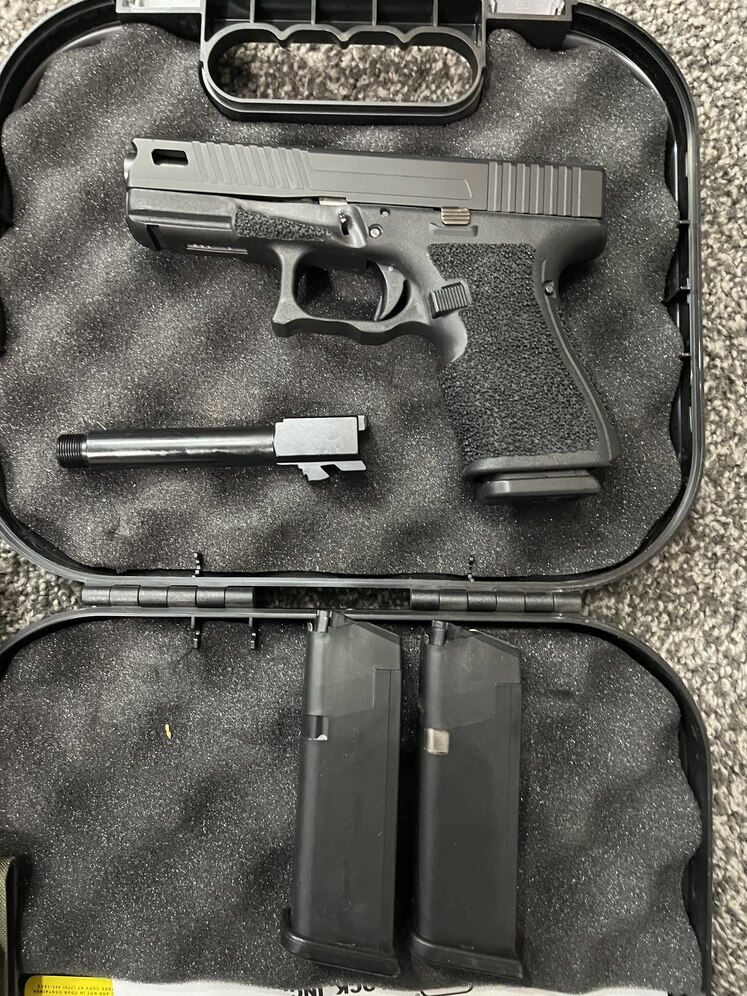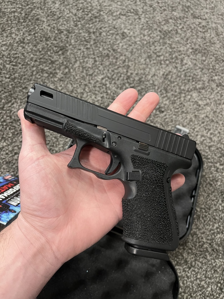 Selling my like new Glock 32 in 357 Sig. The 32 is a Glock 19 size pistol but in the more powerful 357 Sig. I just got the handgun back from a professional shop who did a full grip work up along with the slide. Comes with 3 mags. new threaded barrel. and a Glock Performance Trigger. I'll include a box of ammo with it as well as a custom made kydex holster. Only selling because I have a 35 length and 33 length already. Super nice pistol. with a lot of work done on it. slide and grip work by itself costed me 400.