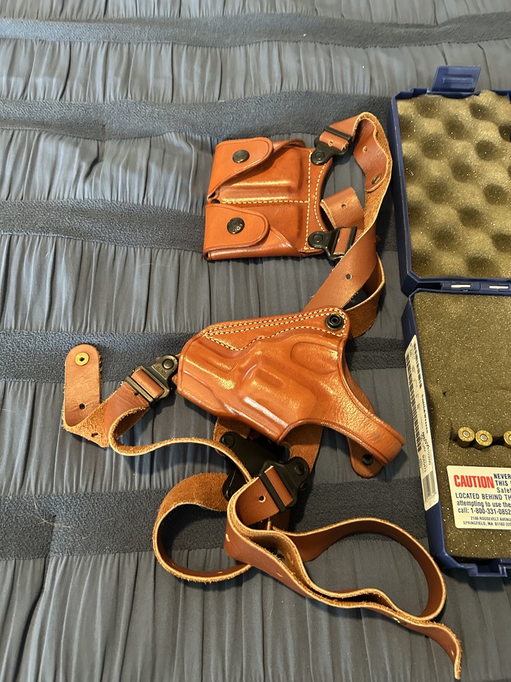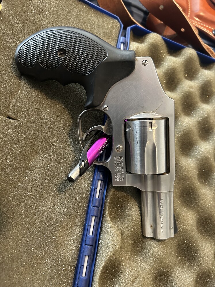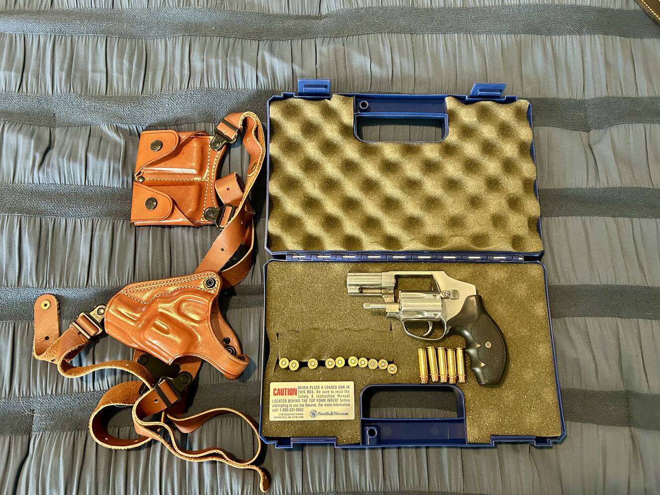 24 year virgin… original owner of this Smith and Wesson 357 magnum, stainless steel frame, five shot snub nose personal protection hand gun. non-slip pachmayr grips, hammer less for unrestricted draw, slim design for concealment. Never fired. Absolute best on the market for stealth. Comes with cross draw Galco shoulder holster and ammo.