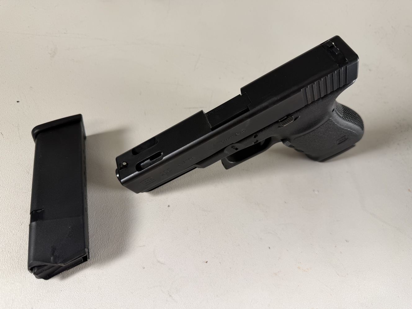 I have a rare Glock 20C Gen 3. This is the factory ported version Glock did a limited number of during the Gen 3 period. Needs a new front sight as the current front sight is slightly shaved down slightly, otherwise in good condition. Comes with two 15-round magazines. Great collectors piece and soft shooting with the ports. Not interested in trades. Must be at least 21 with no felonies, AK drivers license and willing to sign a bill of sale.
