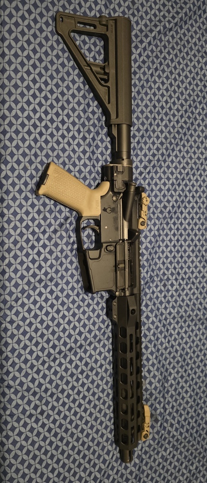 APF Folding AR-15 Lower Receiver, 10.5 inch barrel and BTR pistol Arm Brace comes with standard bolt and trigger set up gun only shot few times. It folds up and fits inside backpack
