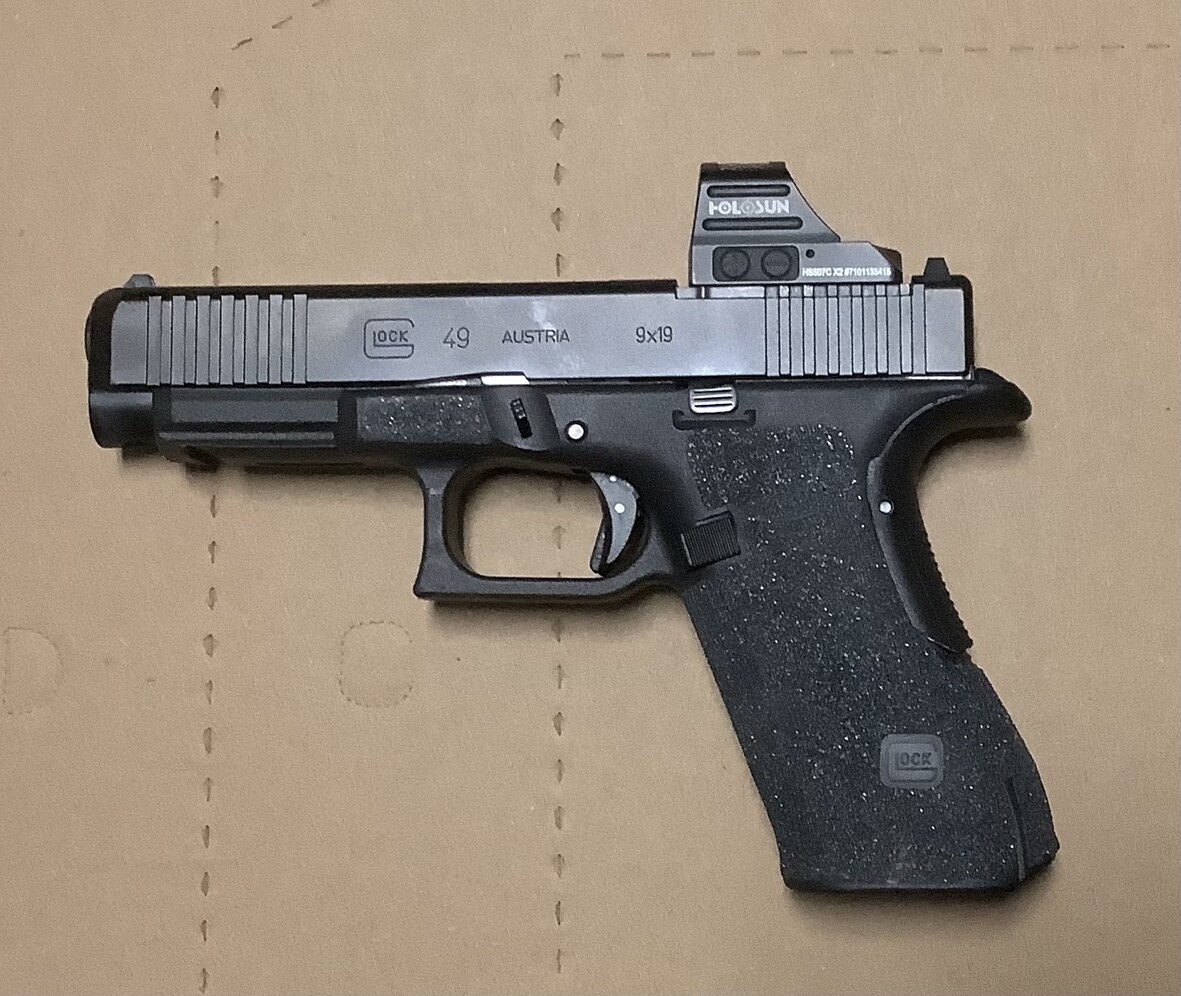 Gen 5 Glock Model 49 slide, Model 45 lower frame, so essentially a Glock Model 47. Holosun 507C X2 red dot sight. Three 17-round magazines. Talon grips (easily removable). Box matches the frame. Cash only. Text preferred, calls will go to voicemail.