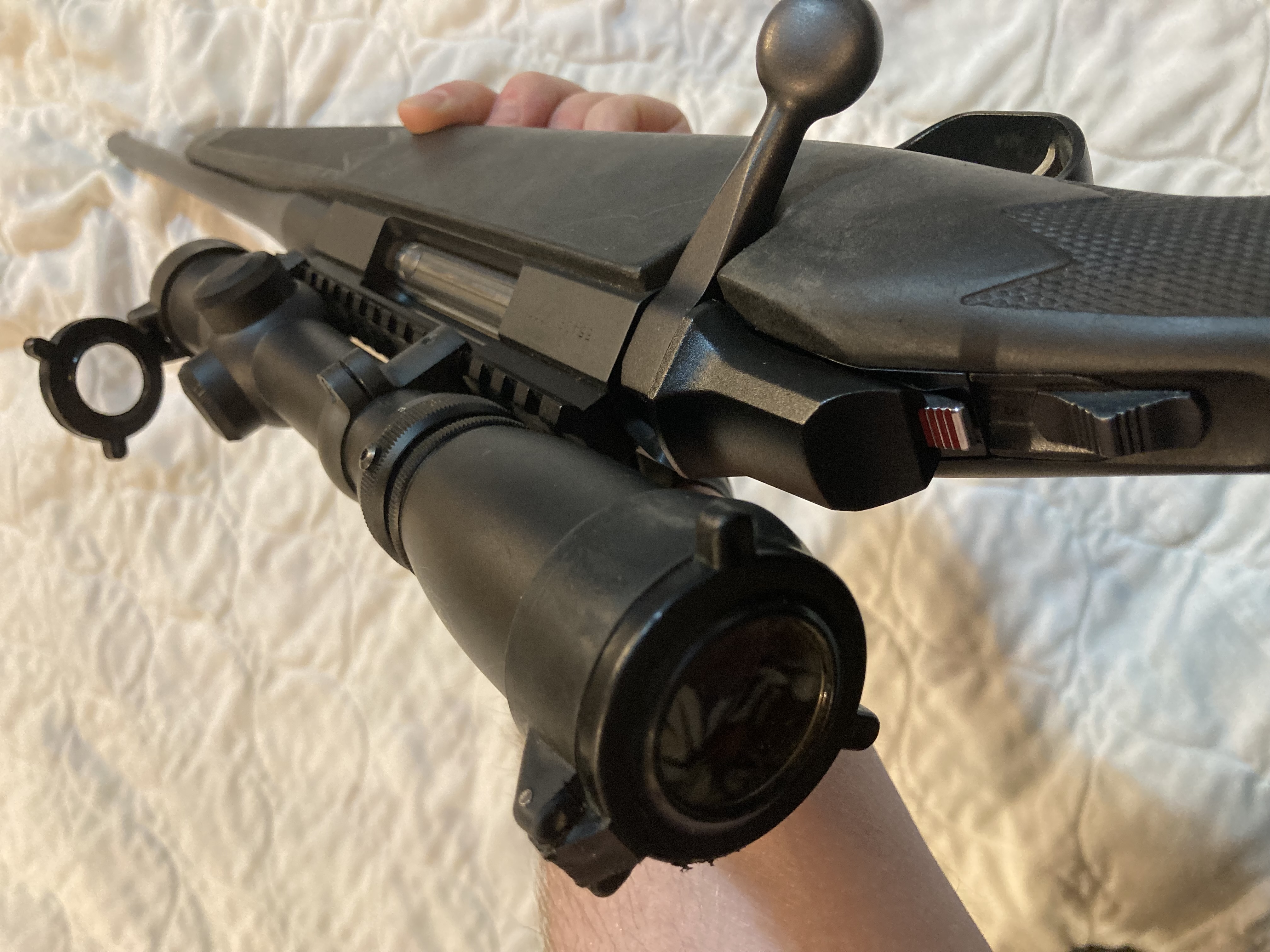 Browning A bolt composite stalker late 1990’s era. Barrel has been shortened to 18” and bored out by JES to .35 whelen from .270 Winchester. One piece picatinny rail with Pentax light seeker 1.75x6x32. LOP was shortened to 13.25” and a limb saver pad installed. Averages about 1.5 moa with 200 gr federal. Built it for a brush gun but turned into a safe queen. Probably 60 rds of factor ammo to go with it.