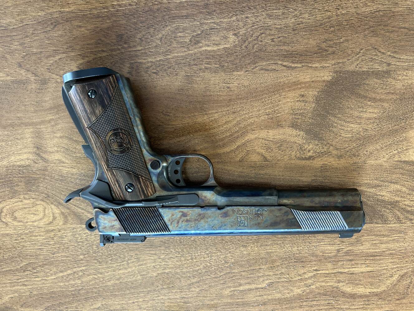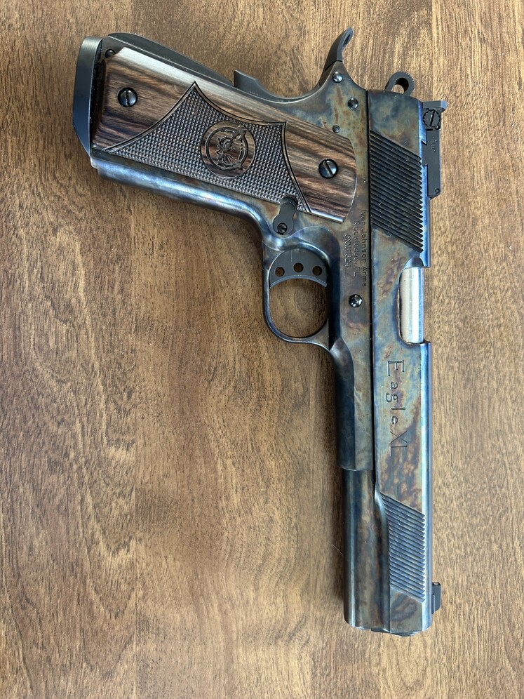I am selling a Iver Johnson 1911 in 10 mm. It has a color case hardened finish. It comes with two Wilson combat magazines and three other magazines. Not interested in trades but would consider a model 29 smith and wesson no 629s. The arched mainspring housing and magwell extender were removed and the original mainspring housing was put back on.