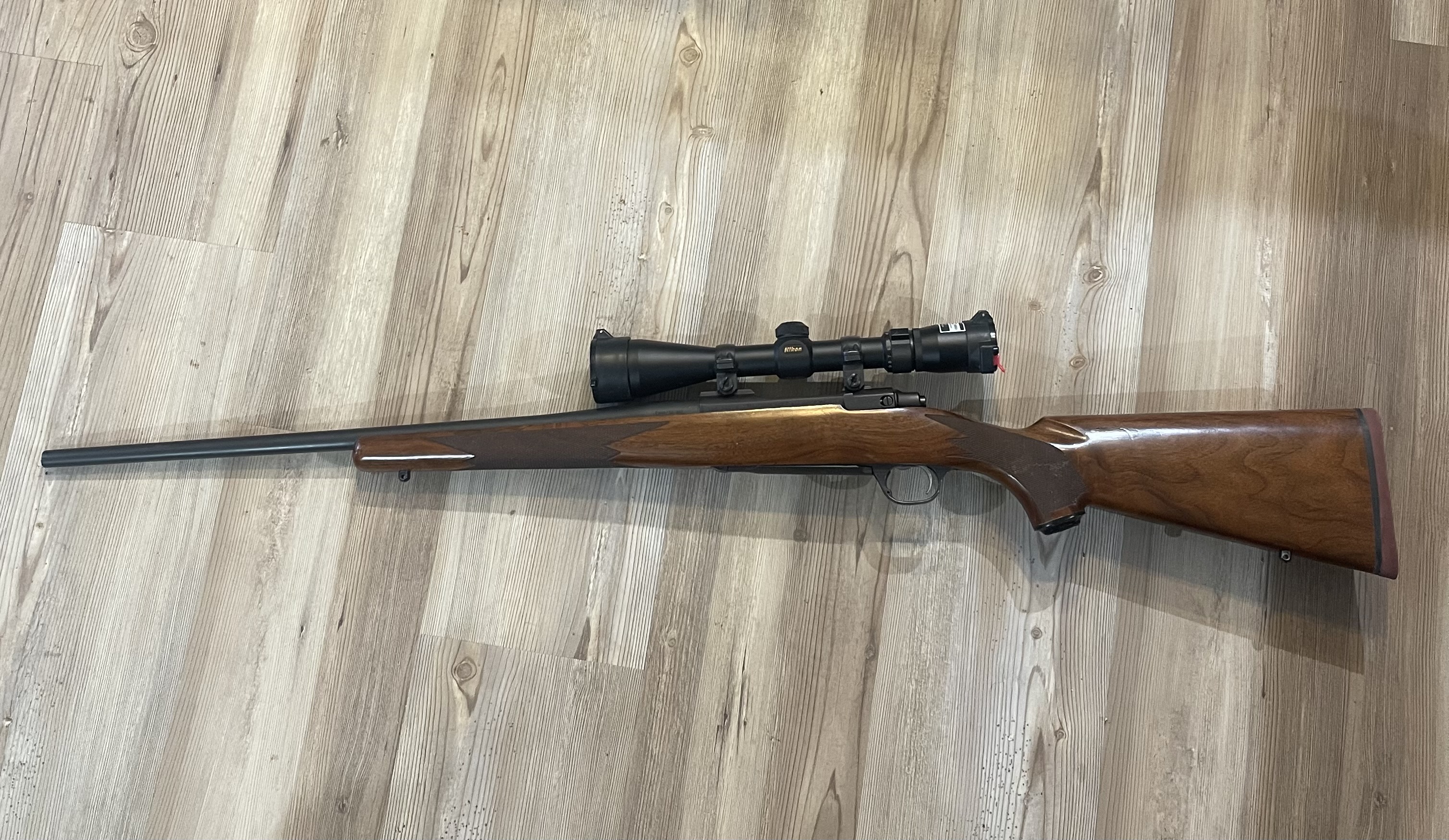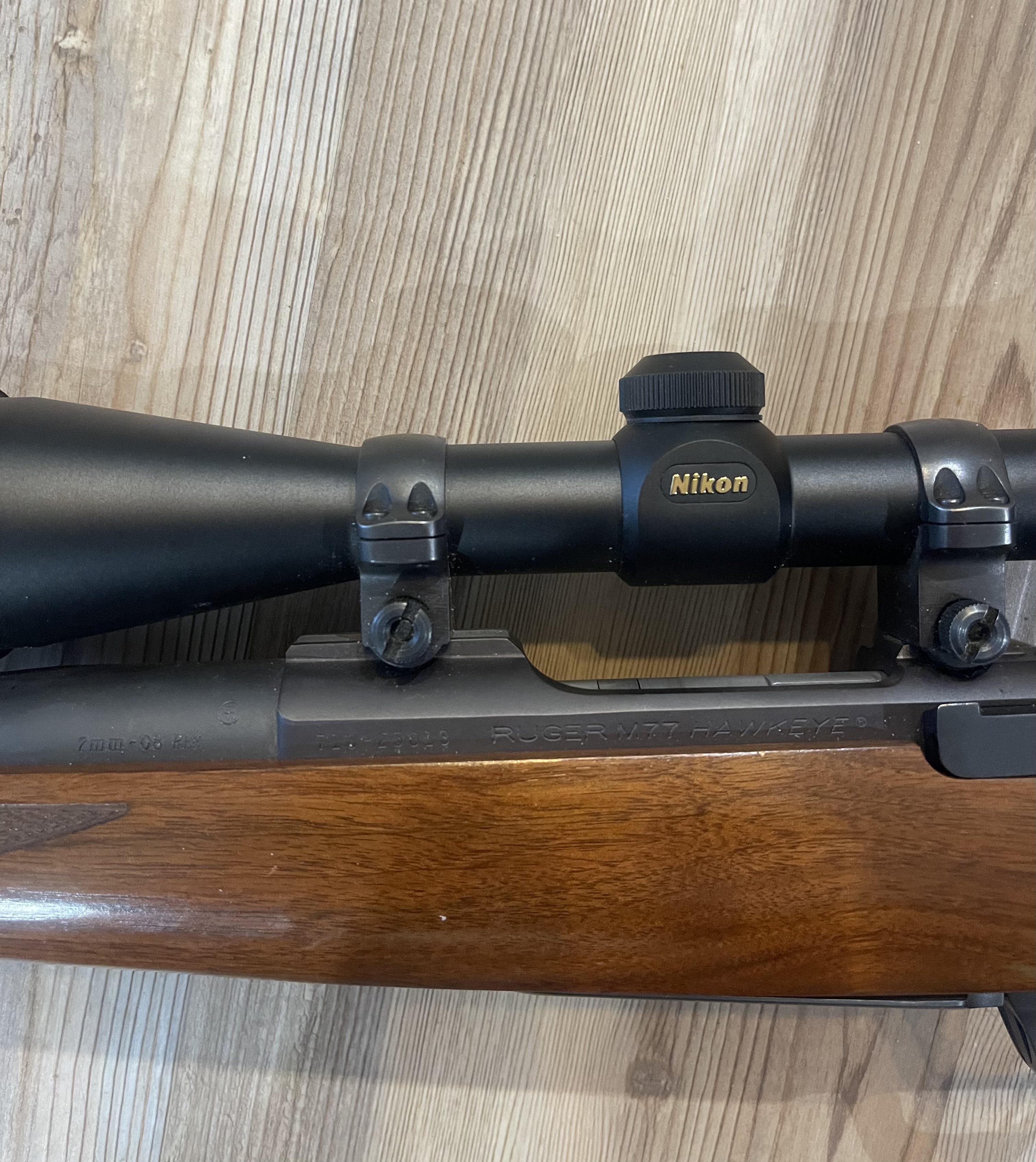 Very nice condition Ruger M77 Hawkeye 7mm-08, walnut stock matte blue finish. Less than 60 rounds through it, comes with Nikon Buckmaster scope 3-9x40. Soft case, and a couple boxes of ammo. Very minimal dings or marks on the stock. These M77 Hawkeys are desirable control feed that Ruger is known for. This isn’t the compact model, it has the 22” barrel. It’s a joy to shoot at the range, upgraded springs and polished trigger, very crisp and a big improvement over factory trigger.