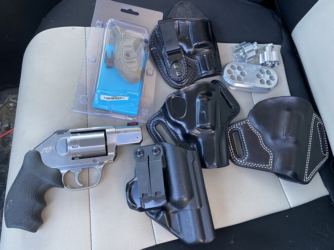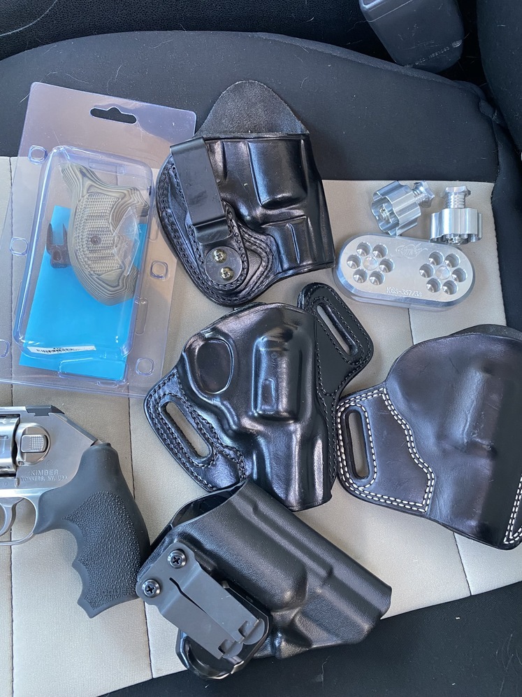 Kimber K6S DCR 357 Magnum satin stainless like new shape. Comes with 2 sets or grips, 2 Kimber speed loaders with stand and 4 custom holsters. $900 obo. If interested please call or text me at 406-493-7904. I might consider trades.