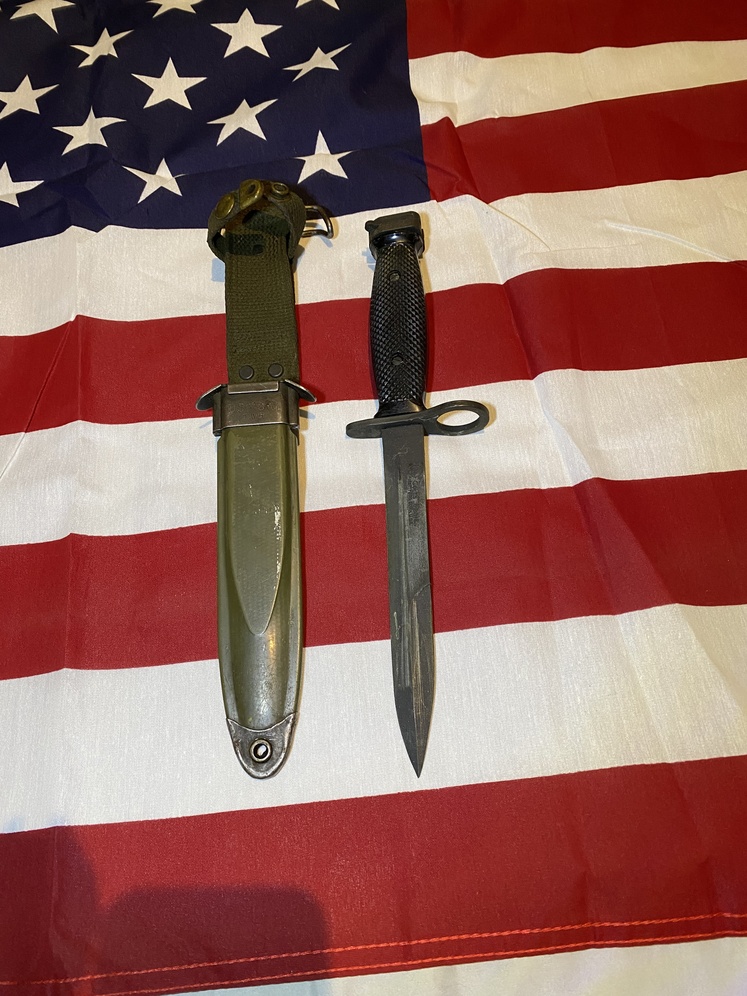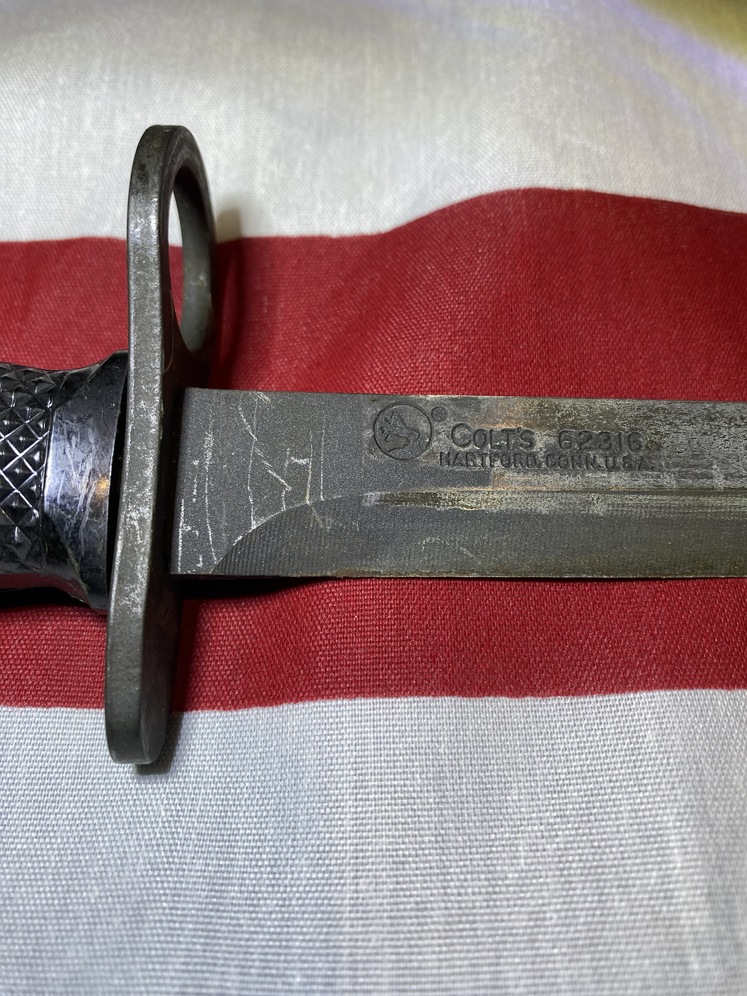 Good+ condition Colt 62316 m7 bayonet with M8A1 scabbard.