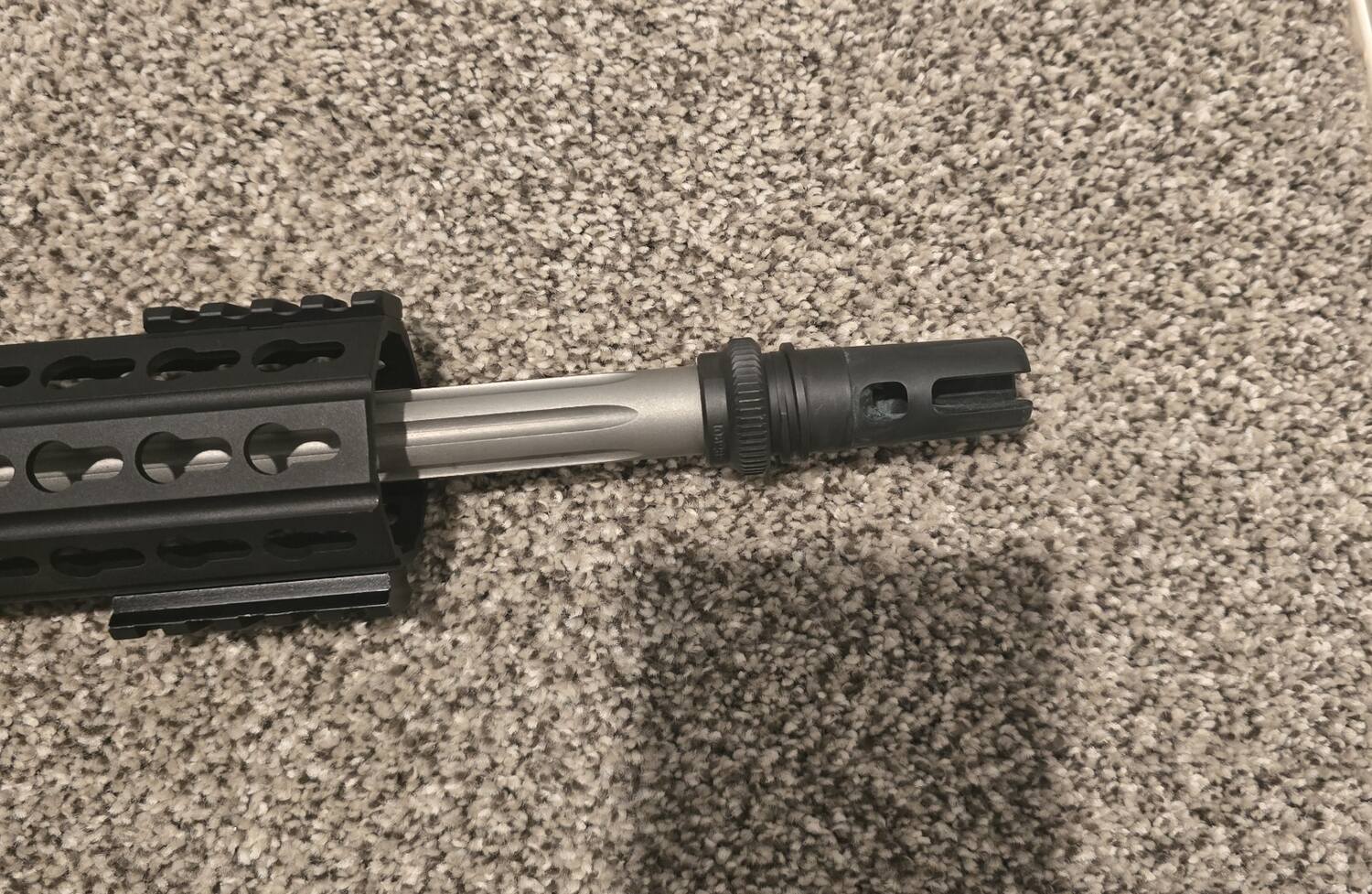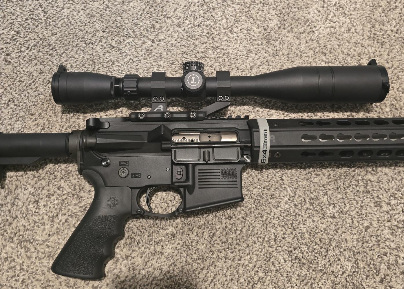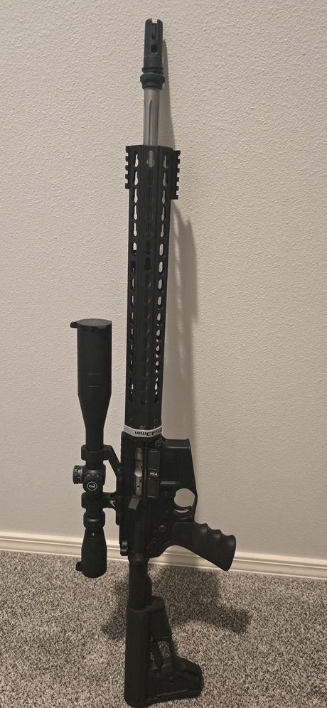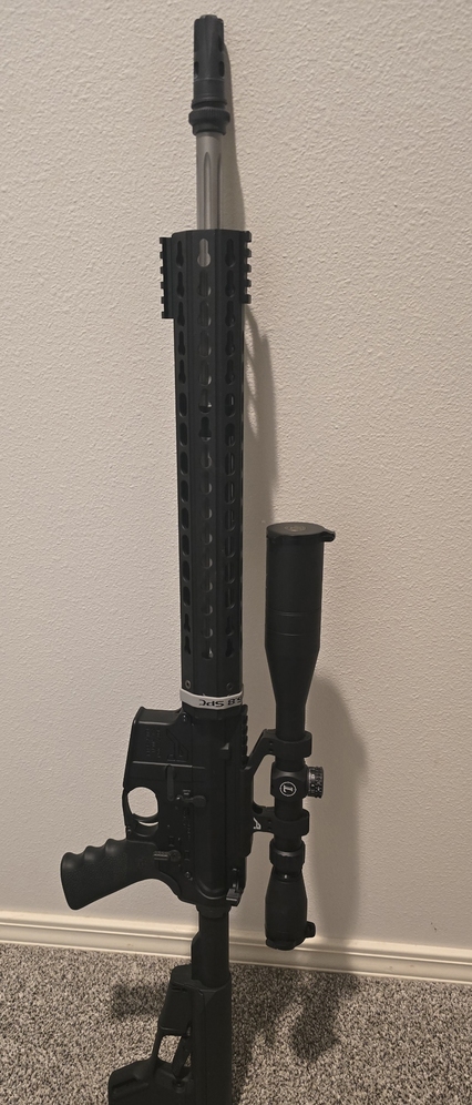 6.8 SPC, Aero Precision 4th of July lower with flag, AP 15in Keymod handguard, Magpul ACS stock, Hogue grip, Geissele trigger, Titanium takedown pins, large latch charging handle, Wilson Combat 18in stainless fluted barrel, AAC muzzle brake, Nickle boron BCG with LWRC combat bolt. Leupold 3x9 scope with Lense covers, AP scope mount, only fired at the range, low round count.